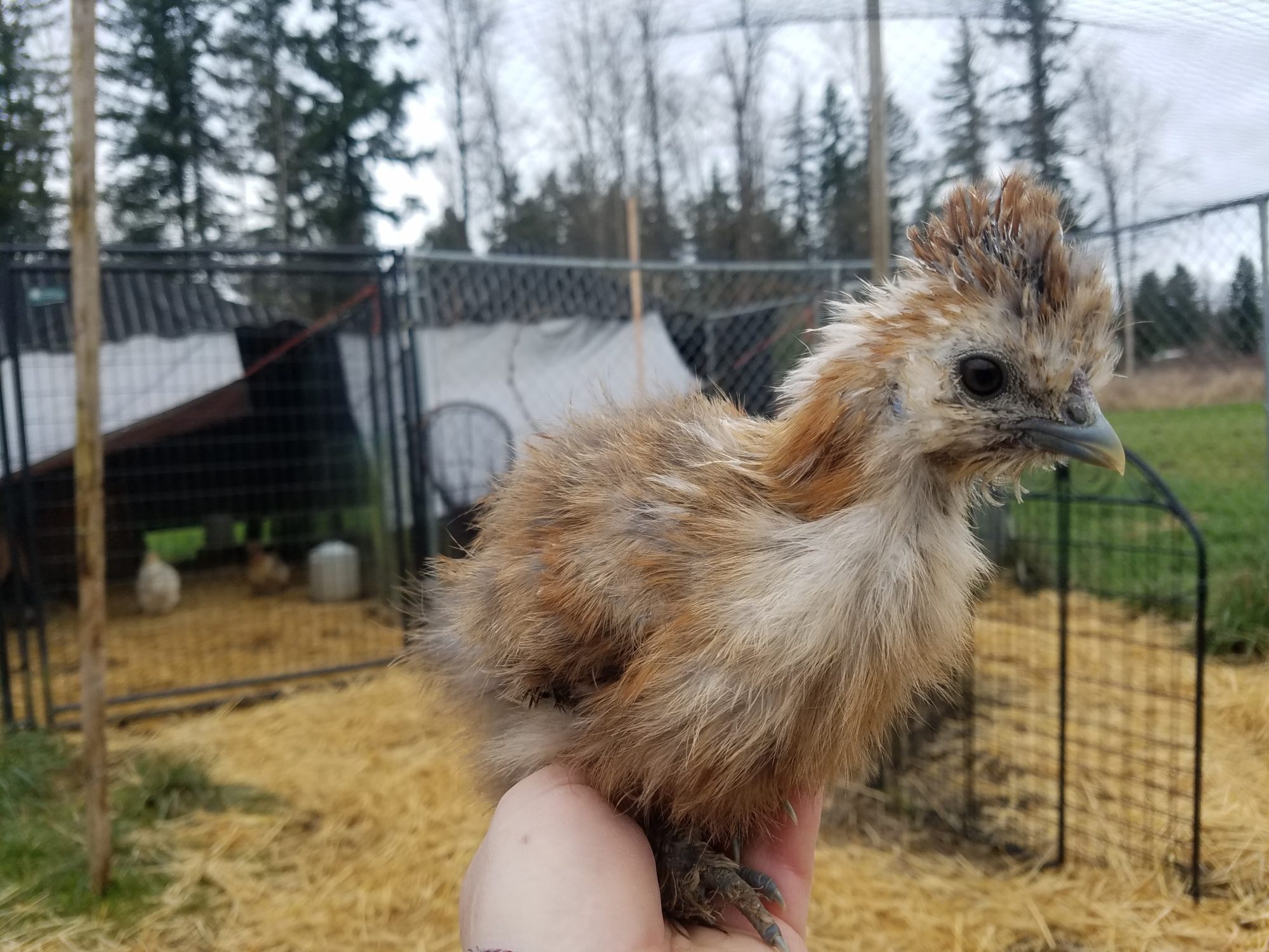 I've only had one chick I've raised and never again LOL! Too needy and follows you EVERYwhere and NEVER stops moving/jumping!