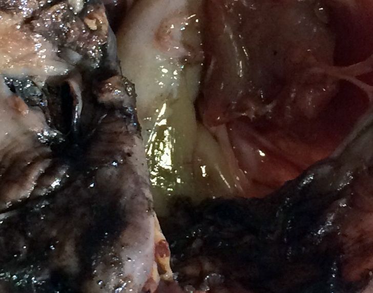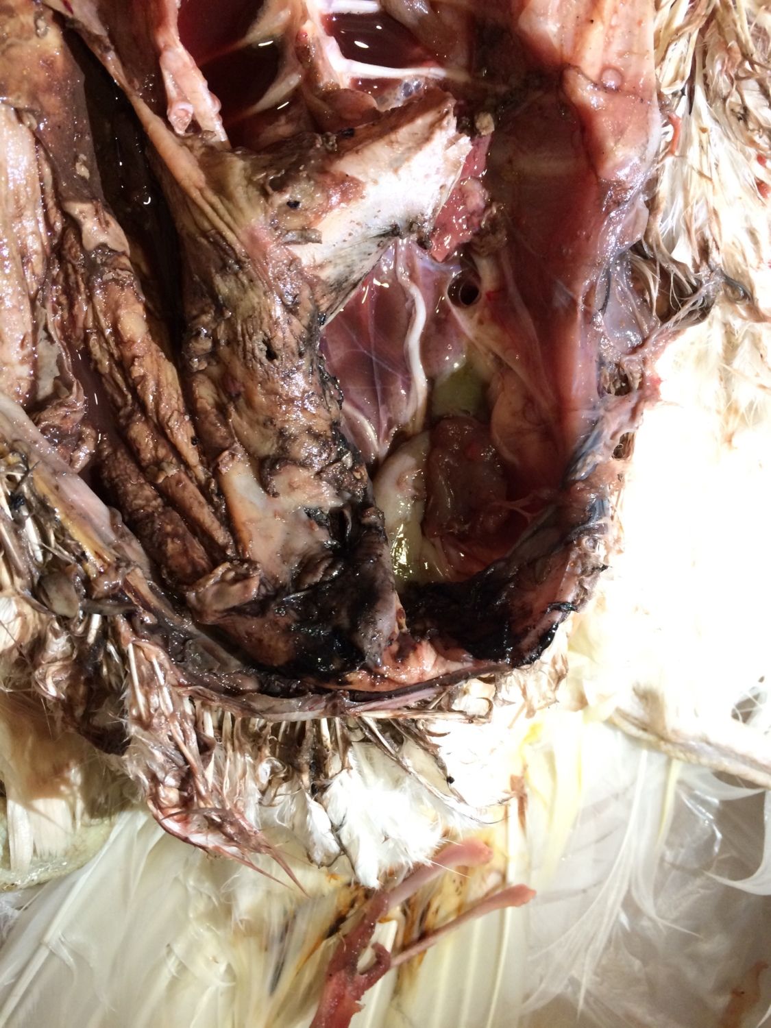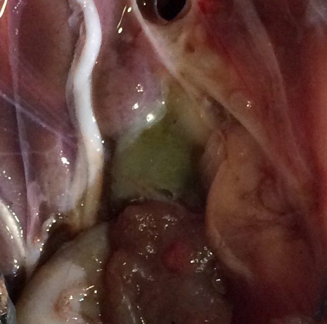 I would almost guess some type of necrotic problem given the nastiness of the cavity and something that would be specific to just this bird. The only thing that keeps me from wanting to just say it was one of those unavoidable instances was the other bird appearing to be similarly sick. Could just be coincidence though.