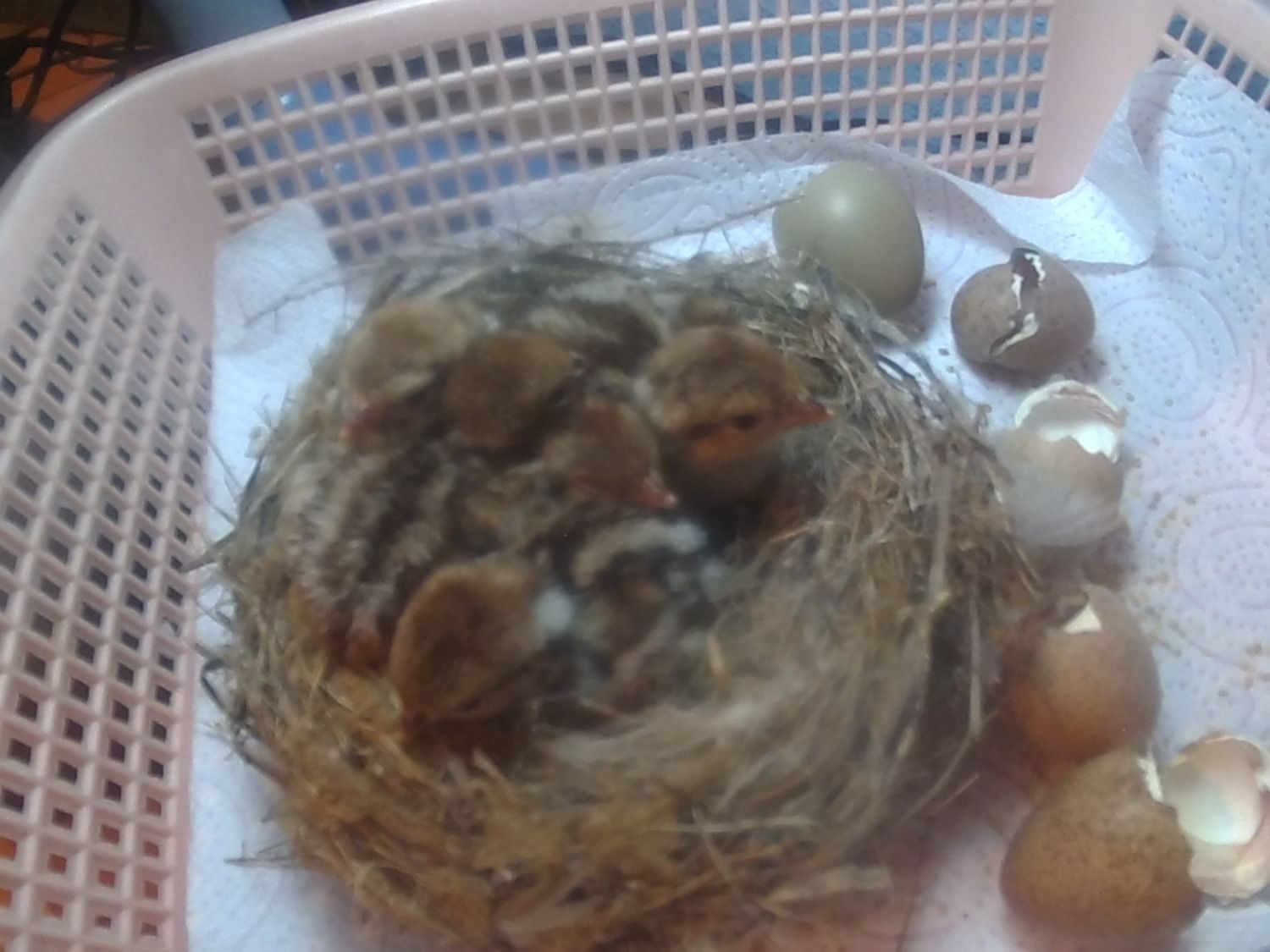 From 12 partridge eggs, 2 were infertil, 2 died after hatching, 3 died before hatching and this 5 are my little cuties!!!!