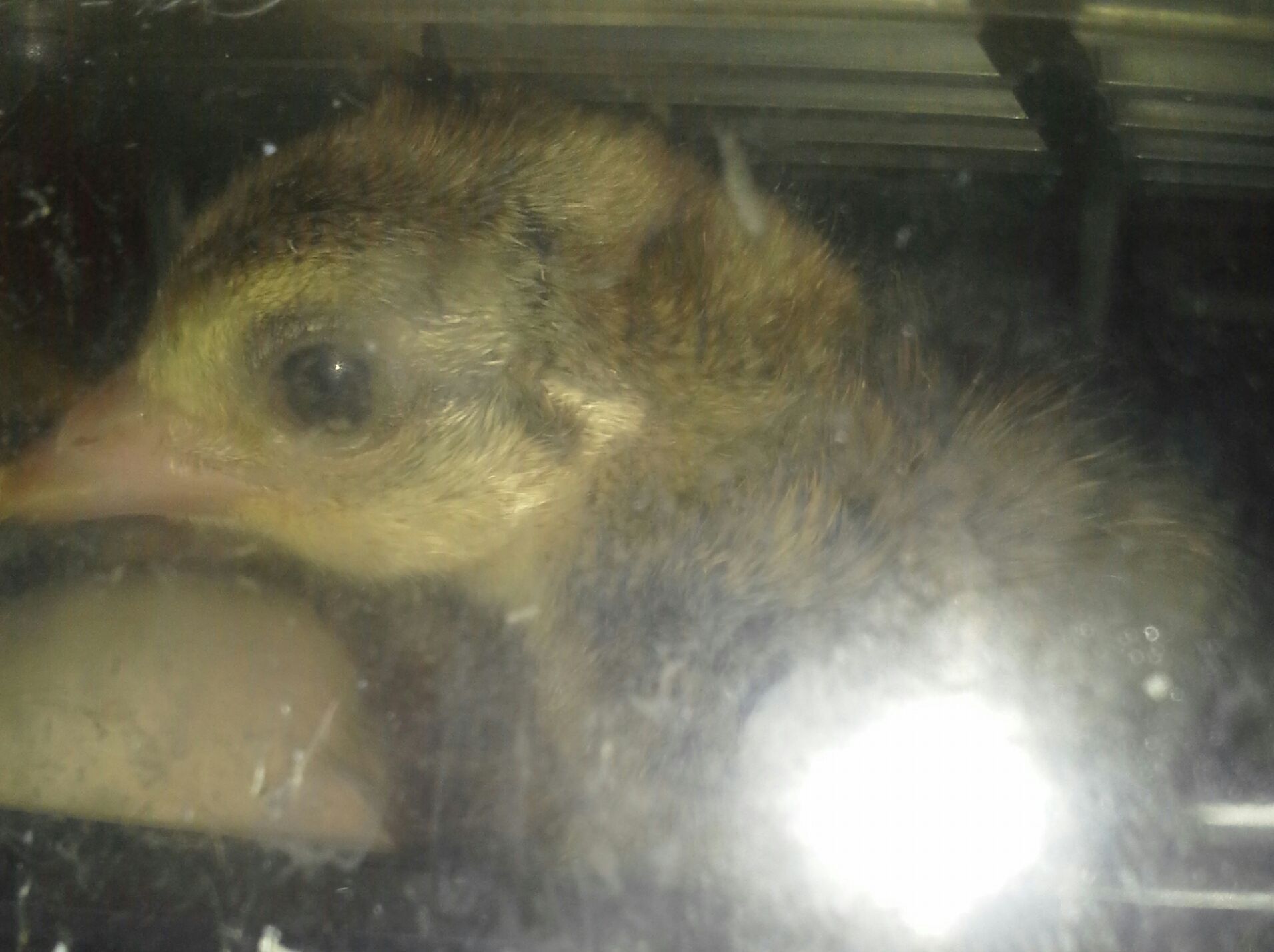 Since this one was 2 days early, I knew that I could not leave it in the incubator until Friday, so I had to take it out of the incubator. It took about 5 seconds for me to take him out and the lid was back on. No other eggs had started zipping, so there shouldn't be and shrink wrap. I guess the other eggs will start pipping and zipping today if they haven't already. The pip that I heard the other day must have been this little fella. I wonder why he hatched 2 days early. That's way too early.:/