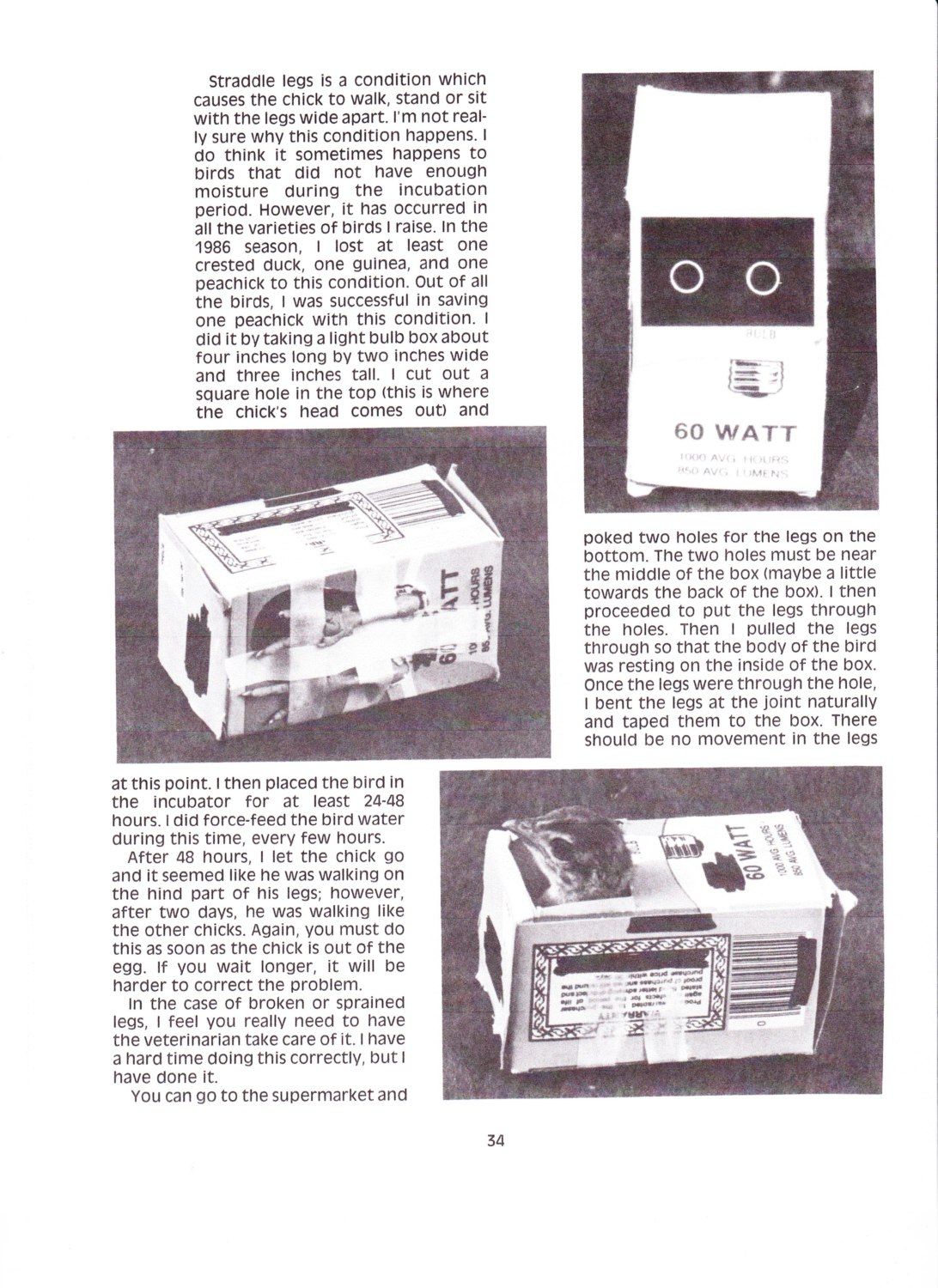 Hey Kathy- Saw this in one of my Peafowl books and wasn't sure if it would work for your little chick's leg problems, or not. Boy the things people come up with to help these little guys- restores my faith in man kind! Hope this helps- Molly
