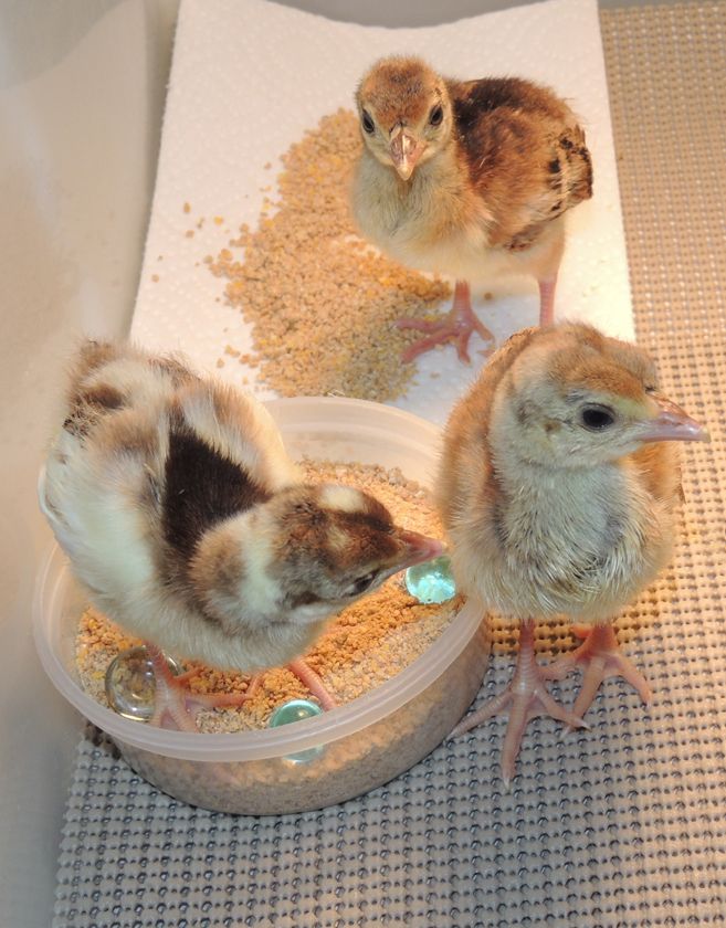 They are still with the cochin broody in the brooder. The fourth one was under the broody when I was taking pictures. They are already so friendly and adorable!