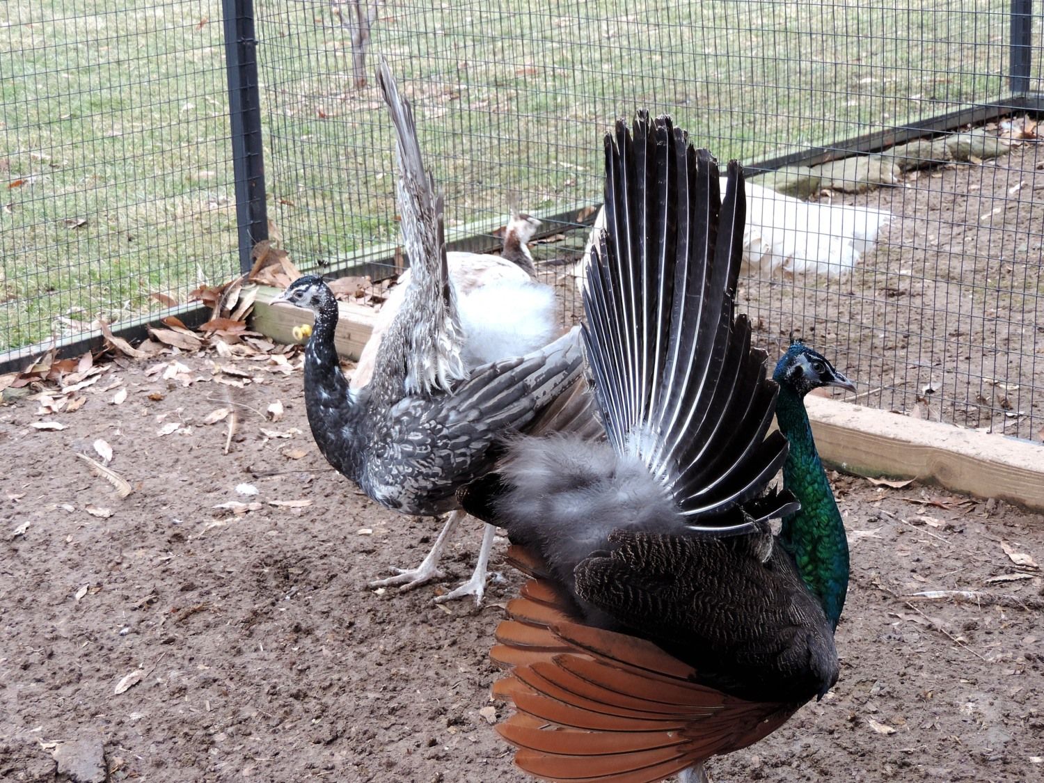 Well I have a little white peahen that was picked on so she is alone to heal, she is healed up now and I have put her with a male that is very loving toward her well he was injured badly flying into a part of the metal roof on their house. I thought he was a goner but vet removed the skin and he is finally getting feathers back. Sorry about the long story but I needed to set the story up for what I witnessed. Well the boy has not been strutting so she is always preening him and such. A couple of days ago I went out after the rain storm to check on them and she is on her belly tail up walking like that calling really weird. The male in the next pen goes crazy runs the fence. Never witnessed this before was she just wanting to be breed do you think? Anyone else every seen this.