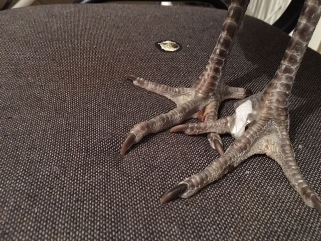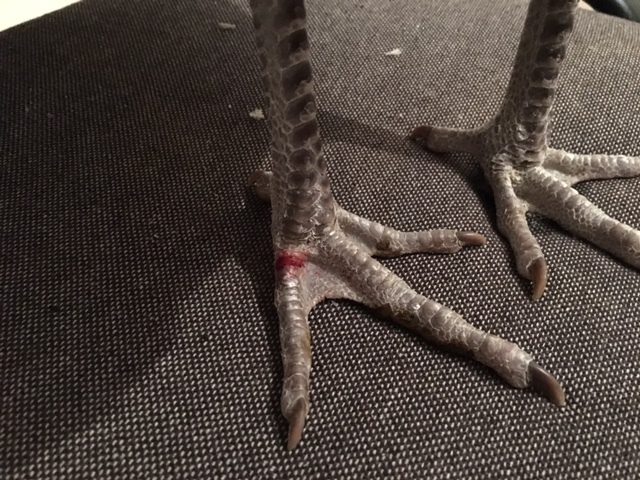I noticed a few weeks back that one of my peahens had her foot injured and was pecking at it. I didn't give it much attention and it healed in just a few days. At the moment she has both her feet injured and on this time its between different toes. She sees it, pecks it - blood comes out and pecks it some more when the blood hardens. Last night I took some pictures I am attaching to this thread now. While taking the pictures I think I realized how she got the injuries: when she is up on a ledge, if she tries to turn around 180 degrees she steps with one foot over the other (i have no idea why), her claw digs in between her toes and then she pulls the leg she just stepped on causing a tear to form between her toes.