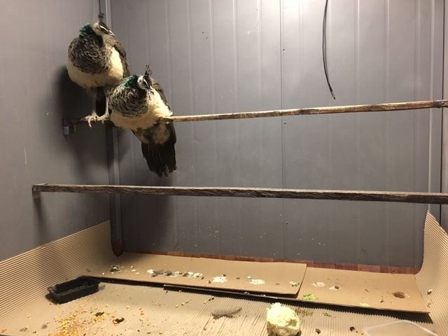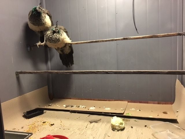 Here is a picture of my 2nd peahen that got an injury last night - she made me realize how the other one got it when she turned around an hurt herself with her claw.