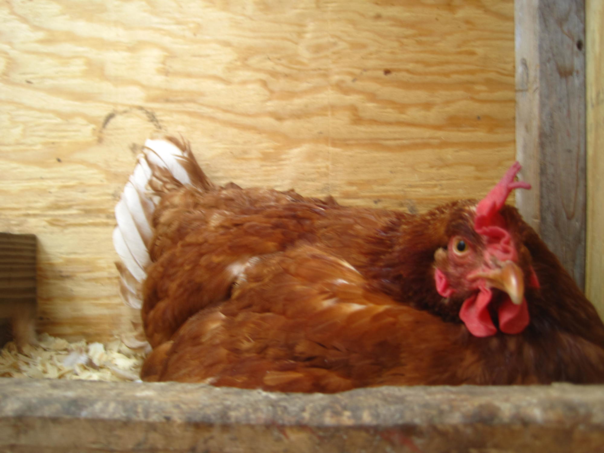 Our Pebbles, a 1yr old Red Sex-Link, has gone Broody! I am fairly surprised because RSL's are not known for their broodiness.