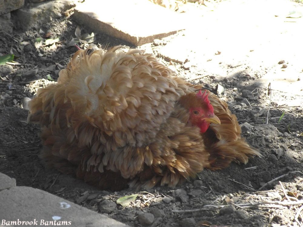I love this one of LuLu (Frizzle Pekin Bantam) .. talk about randomly sticking a chicken head on a pile of feathers! lol:
