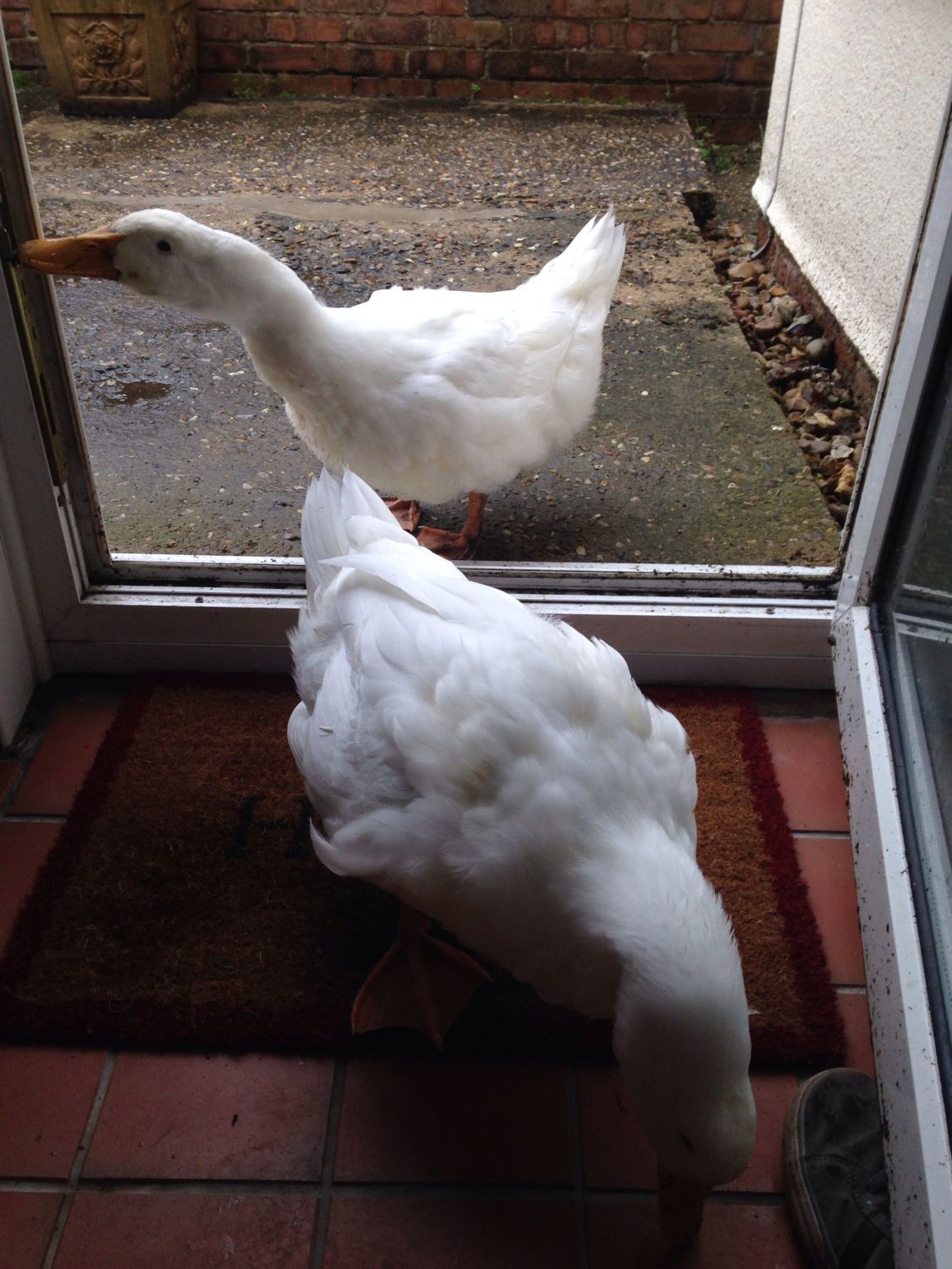 Maybe Daffy is in love with you?I do think they a pekin as they don't have think pink beaks oh well they are beautiful. Although daffy attacks any ideas how I can stop this behaviour towards me?
