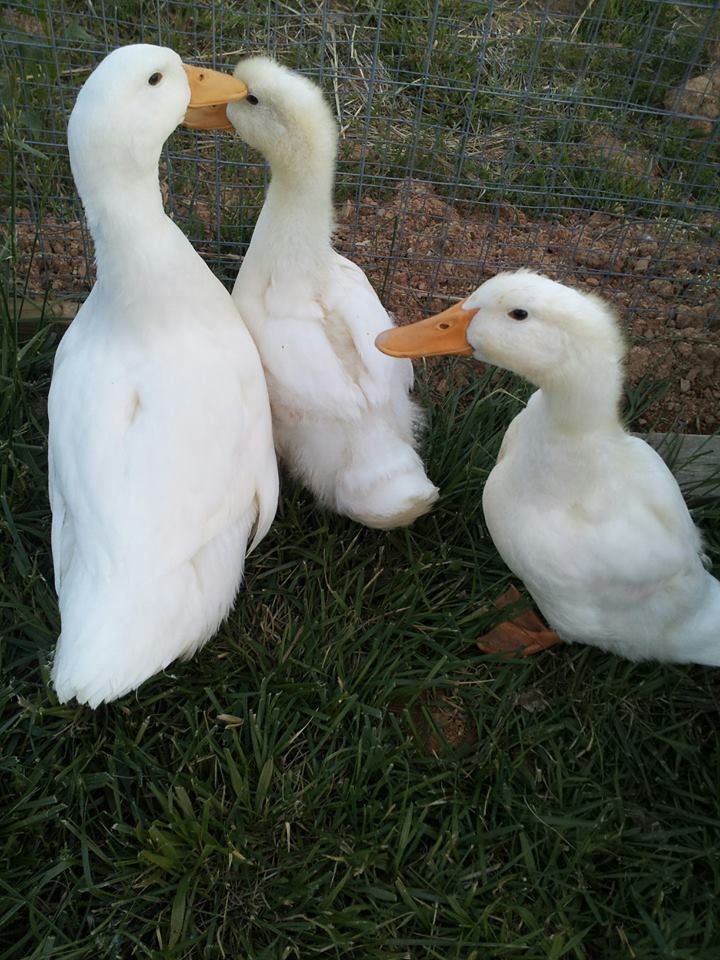 I am new to BYC and fairly new to owning Ducks we have 3 Pekins and as of now have no idea the sex of them, We suspect the oldest one is a female from what we have read but have no idea of the two others. All our babies have just gotten big enough to have a permanent home outside. We started out with 2 Pekin ducks and they were definitely bonded to us and were our babies. We lost one of them due to an attack by the neighbors dog and our neighbor showed up one day with two 2 day old ducks.Feisty is definitely my baby but since the smaller ducks came along she would rather be with them than around us. The two younger ones Yogi & Boo Boo have not bonded with us at all! Yogi does ok if you separate him from the other ducks eventually calms down after a while. Boo Boo acts scared to death and goes into defense mode if you come near him without food, if you try to pet him or pick him up he bites.