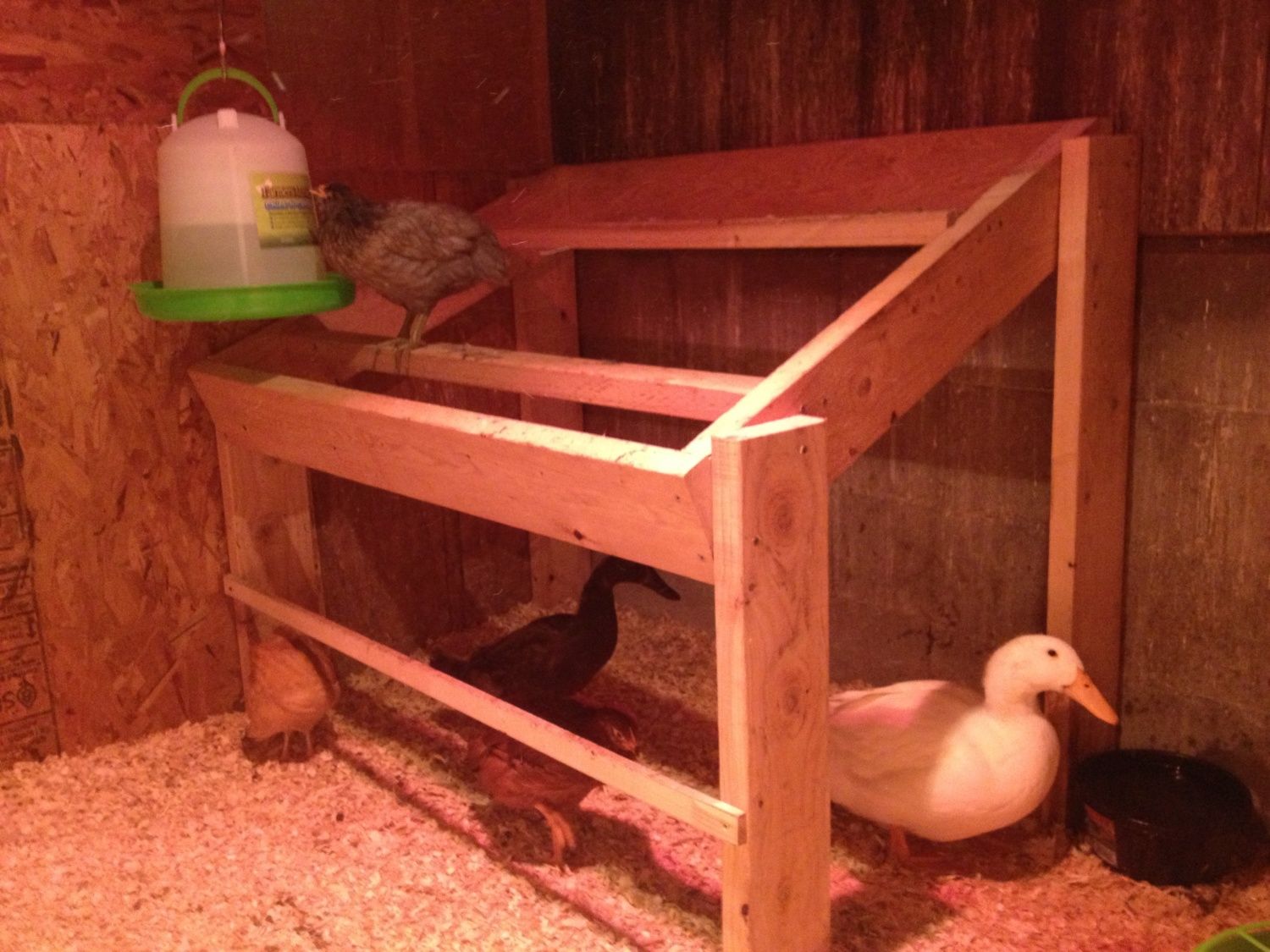 Finally found a solution to the ducks drinking and sloshing ALL the water so there is none left for the chickens. Waterer up above the chicken roost out of the ducks reach and a small bowl for the ducks on the floor. I just have to scoop up the wood chips from around their bowl once a day and replace with dry chips but its not so bad. I think I'm going to build some sort of hardware cloth frame over a plastic tray to trap most of the spilled water.