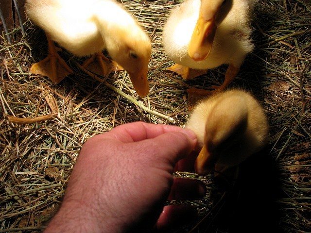 Major breakthroughs on my Pekin ducklings not being scared of me any more!!! I'm happy! I felt so bad that they were so terrified! Now it's getting crazy how they attack me...