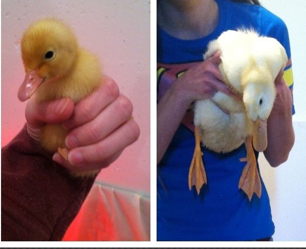 I've never raised one from a fuzzy baby my old drake was already several months old when I got him. I can't believe how fast they grow....My Pekin, Puddle, at 2 days old and again at 4 weeks and 2 days old.