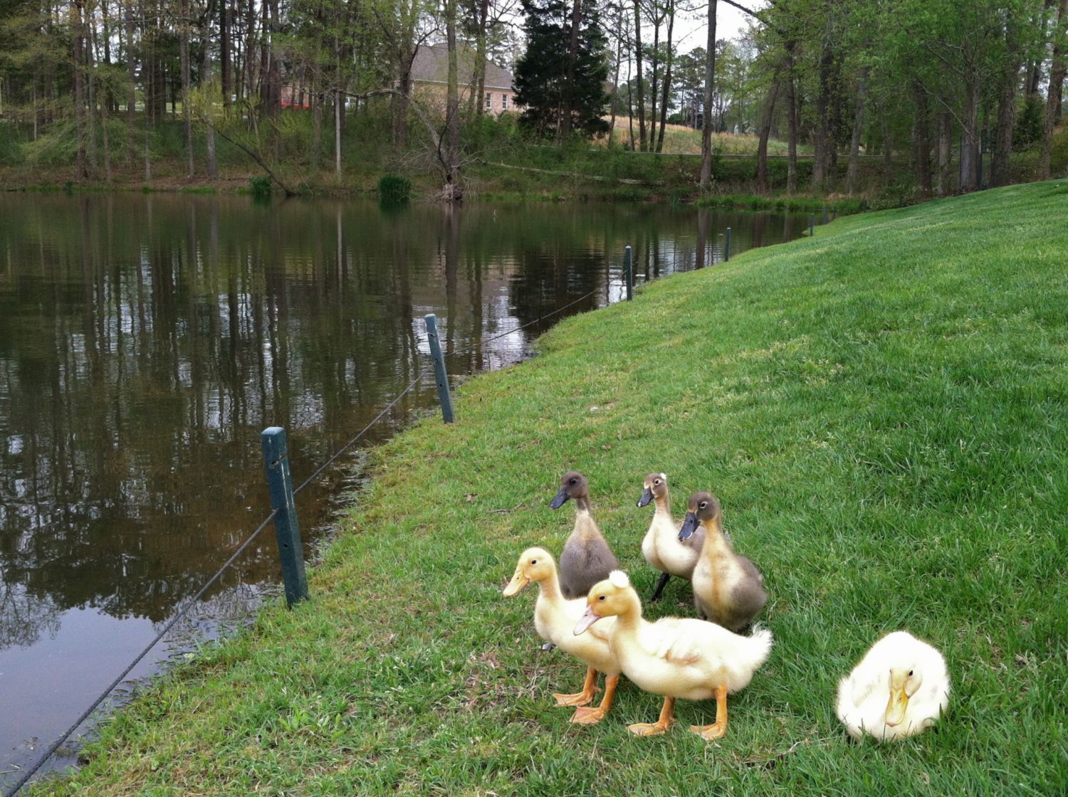 2 pekin's here! I have 1 drake(Aflac) and 1 hen(Flo) who is currently sitting on her first "litter"... I'm new so I don't know much terminology, lol. Est. due date is June 10th...I have questions though. They are in a pen with a rooster and 6 hens (chickens, who all free range during the day)