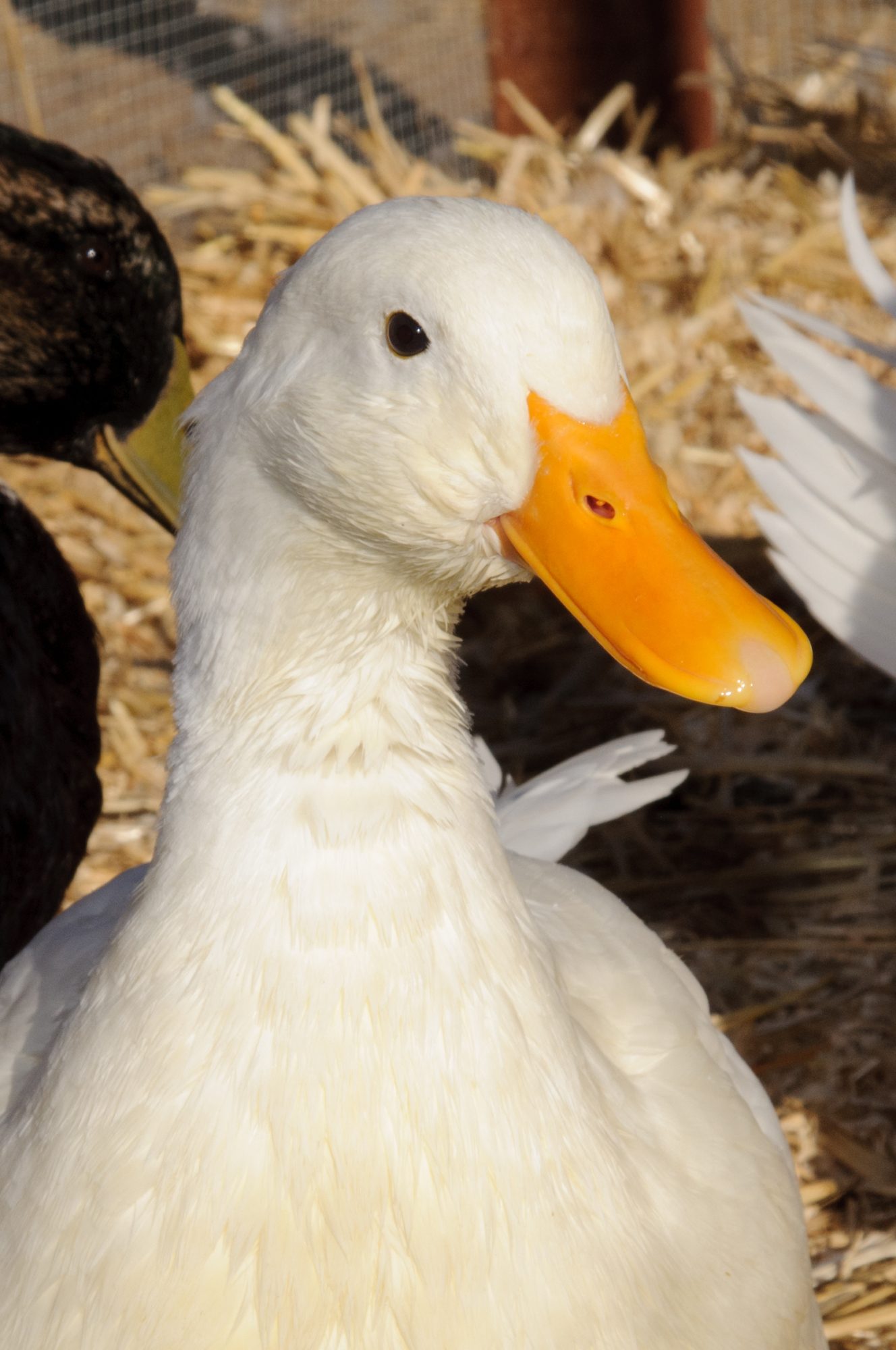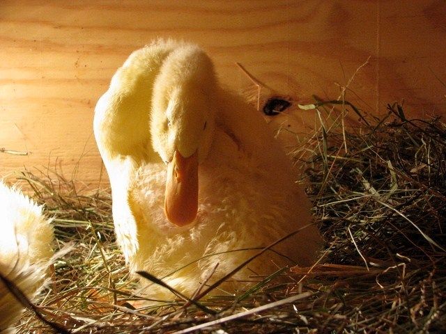 I suspect the quacker is a drake. I know it doesn't say much but he's biggest and he taught my schnauzer who is nosy a lesson about sticking her face in the brooder. Lol. "His" name is pinky. Haha (pink beak)