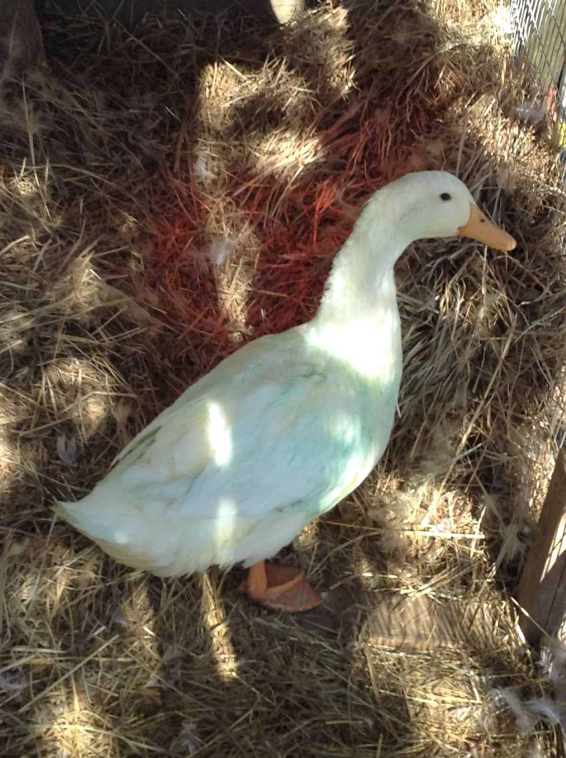 Outdoors - additional storage tote nest boxes. Our Khaki Campbells use them daily when they lay, and some of the other ducks use them as shelter when they don't feel like using the run in shed.