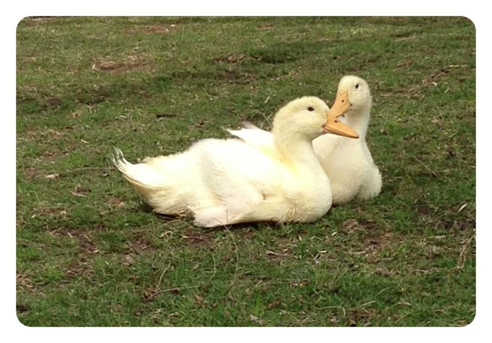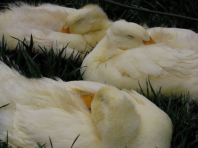 Taking a nap by me after some playful hot laps around the pen....which is hilarious, IMO...some grass eating, wing flapping, preening and water drinking.
