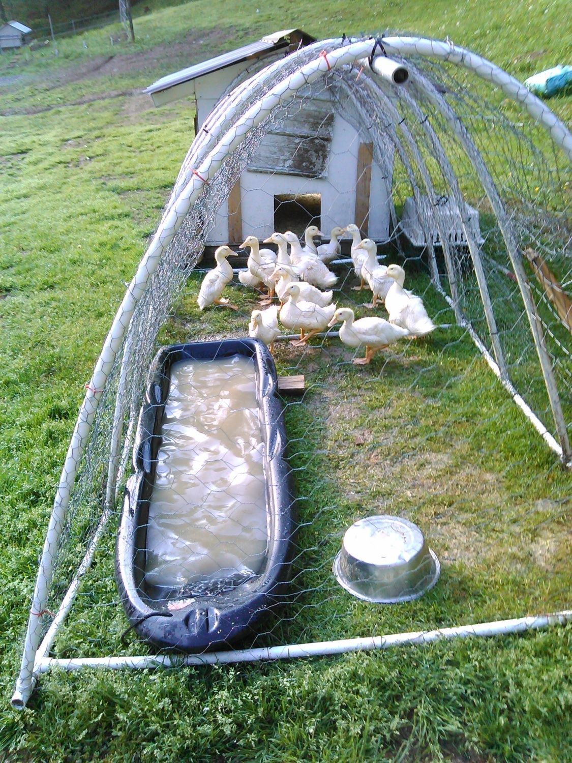 My 2 are sti babies. About 5 weeks old. I just picked up a 110 gallon tub at my local tractor supply for 65 bucks. Im gonna build a deck with thier houee on it and around thier pool.