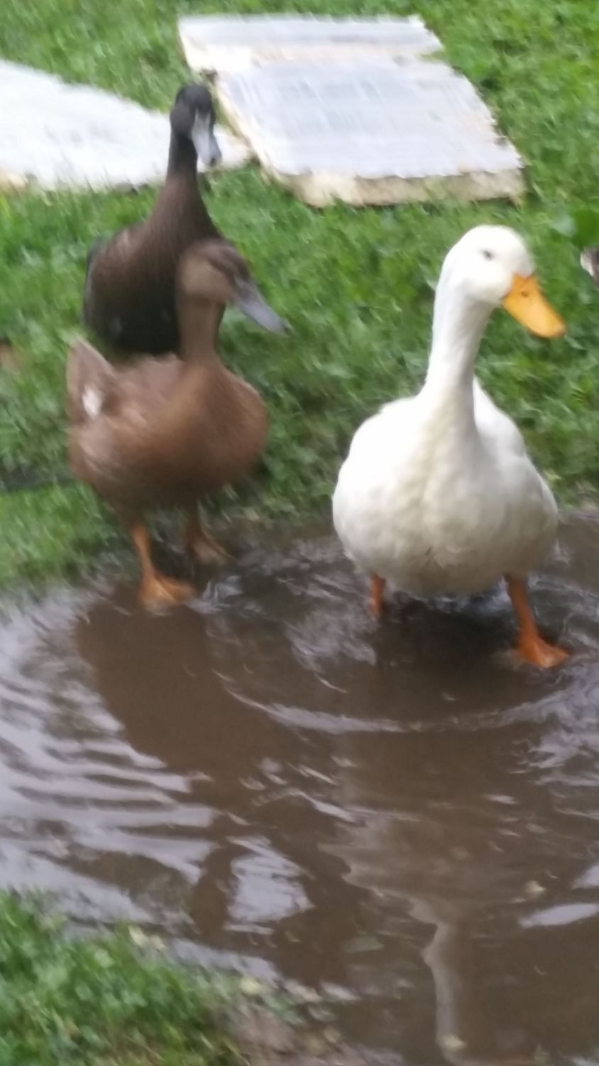 Heehee. I love them. And they just wade into it barefoot. They don't care. So cute. The big pekin needs a kiss from me.