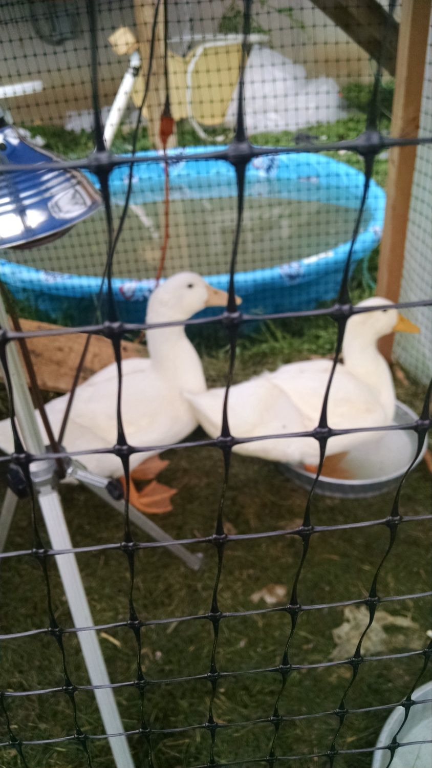 Her two are now in a part of the yard with a pond. They can see our babies, but not get to them.