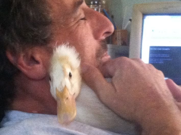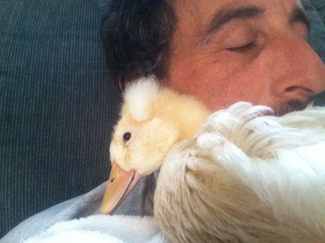 that is beyond precious. U r awesomeThis is our special needs DOUBLE crested Pekin "Daffy"...She has a balance issue and she can't stand since birth....We just couldn't, after looking in those eyes, cull her...So, we decided we'd just do what we have to...Built slings and every contraption imaginable to find some way to keep her comfy, now we're to a box with a thin track that doesn't allow her to roll, works!...We also take her outside everyday and let her swim in one of the pools, she swims in circles LOL...We just sit there and make sure she doesn't drown herself but she's getting better...We should have named her Earnhonk as she can only turn left! After she's done her swim, if I'm home(or later when I get home), I bring her out and we just snuggle on the couch...She is so sweet!![]()