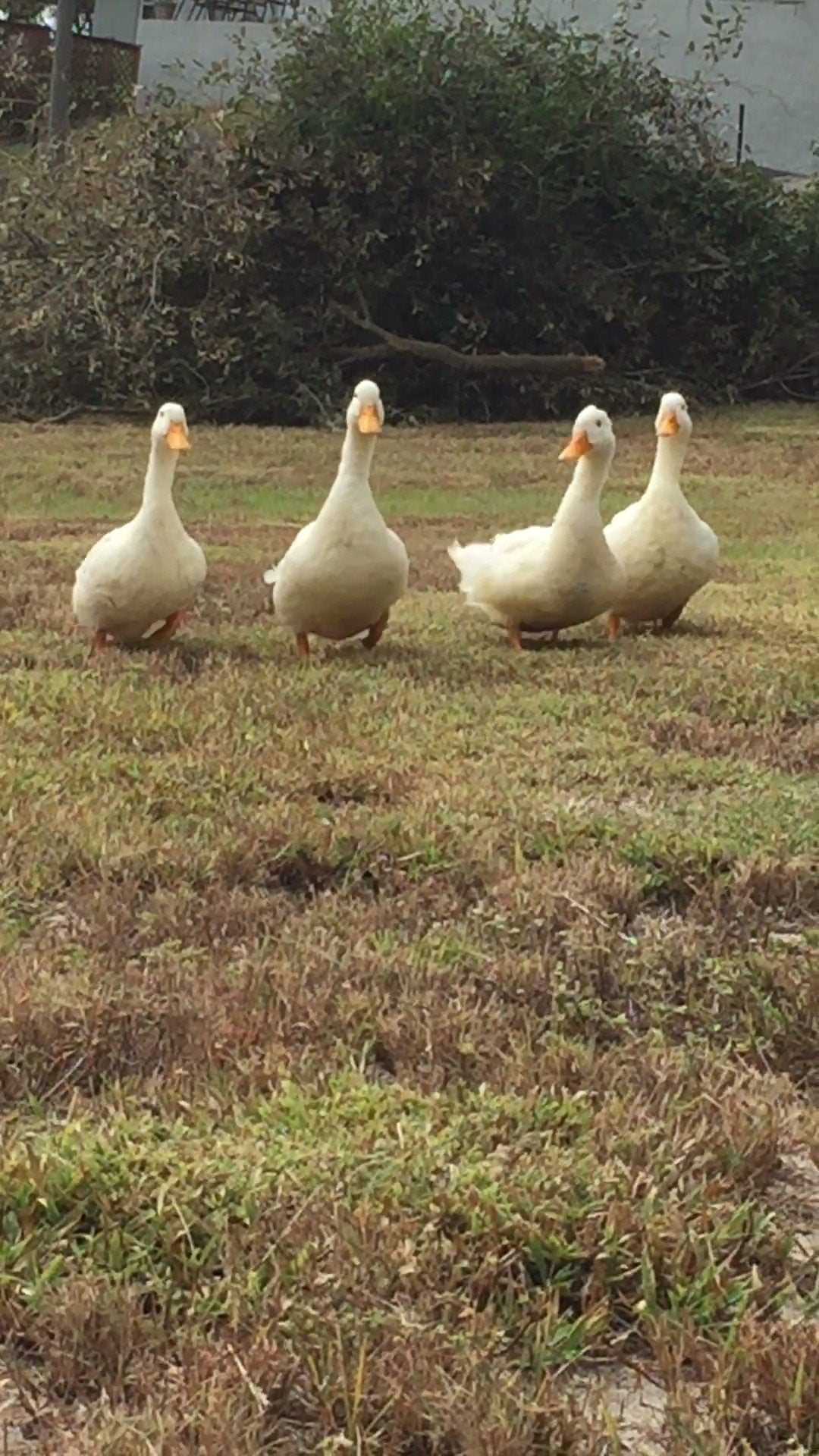 We purchased 4 pekin ducks and brought them home yesterday. They ran down to field and are hiding. 3 girls and 1 male. How long will they hide? We have put food down and i am sitting here waiting to see if they come out since it is dark. Anyone experience this? The ducks hiding like this? What can i do?