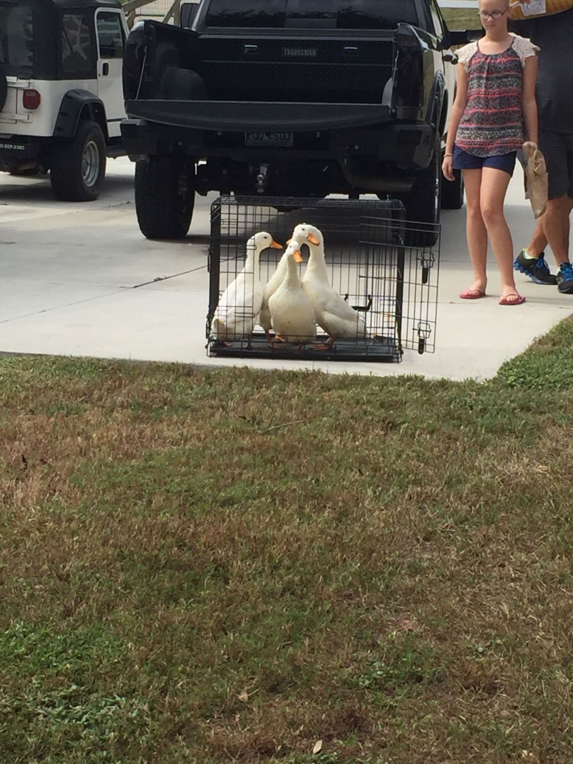 When they were let out of crate they ran down to the lake, then came out and walked into the field.