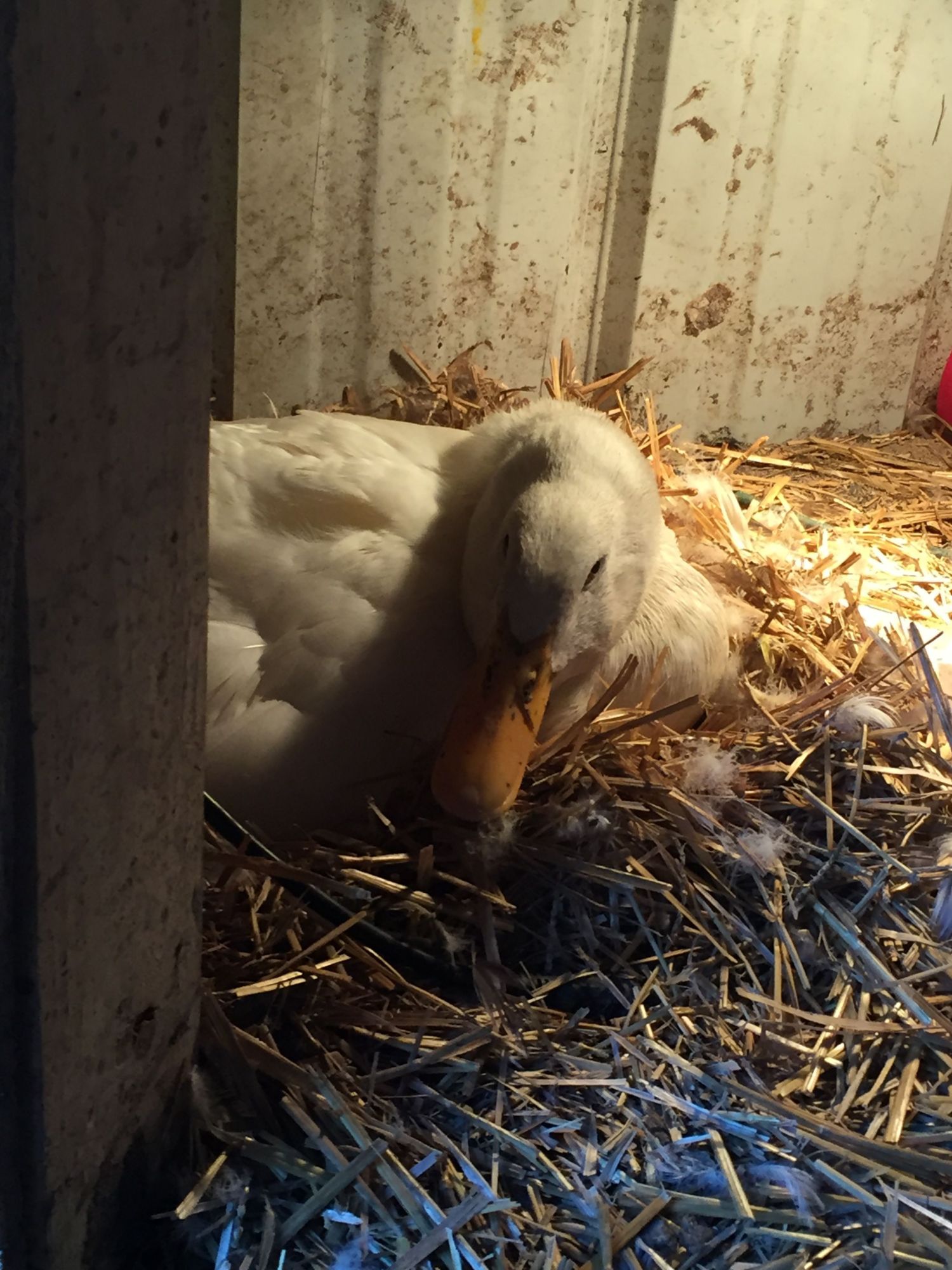 Also I didn't realize she even had this nest until like 5days ago and every morning when I let them out she would still cover them with straw then go outside but today she won't leave the nest and she's hissing and stuff at me, so why has her behavior changed? Is it normal? My ducks are normally very friendly
