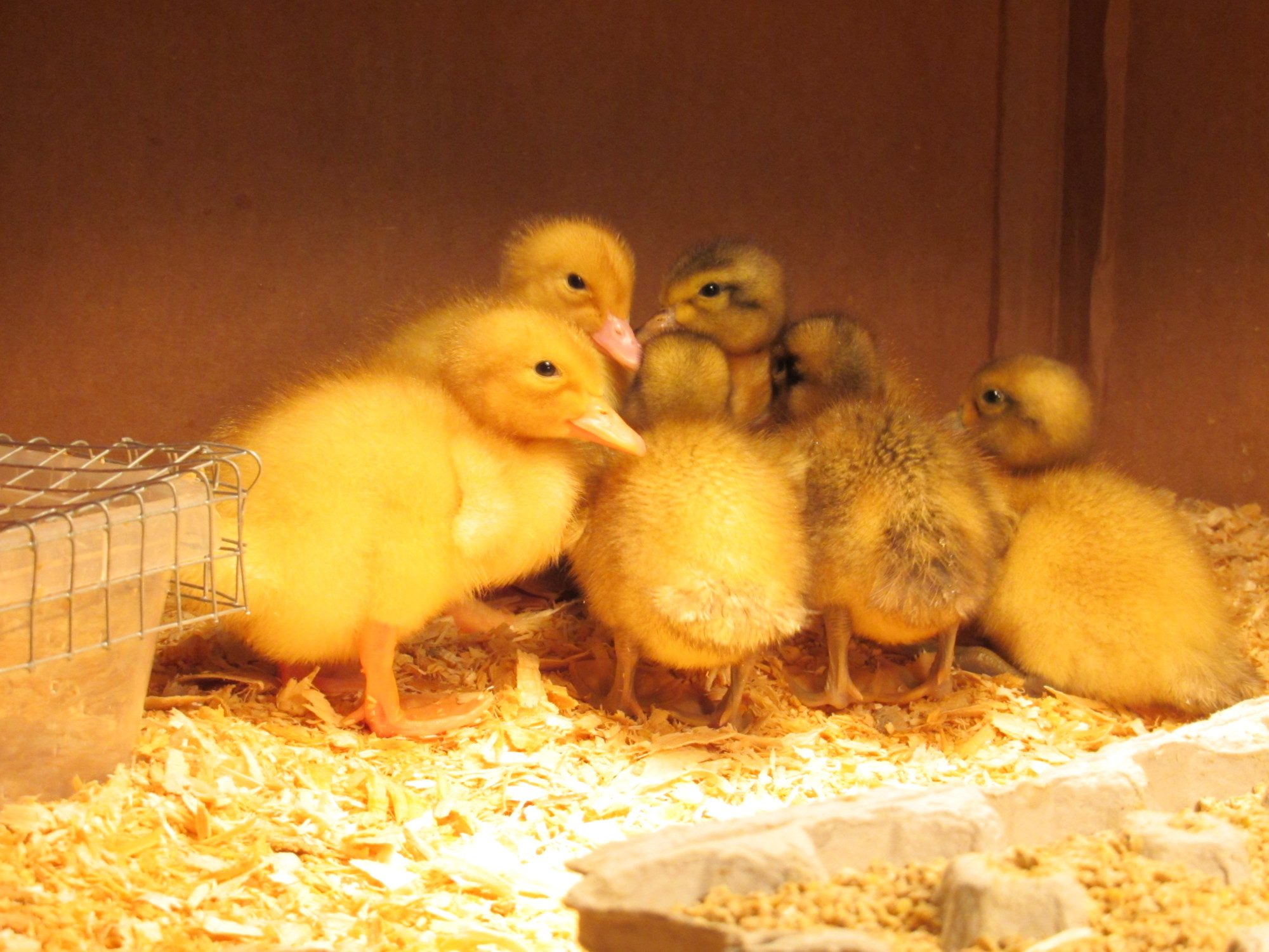 They would of been 7 weeks as of last Sat. so now they will be 8 wks this coming! Have you had yours out all day in the rain yet? Mine still don't have all their feathers. Their body still has alot of down. I'm unsure what to do.How old are they in this pic? I'm wondering if Aflac is older than I thought he was...it will be 7 weeks since we brought him home on Friday, but he has all his adult feathers in...not fuzzy like these guys. We got him as a duckling from the feed store so unsure on age.