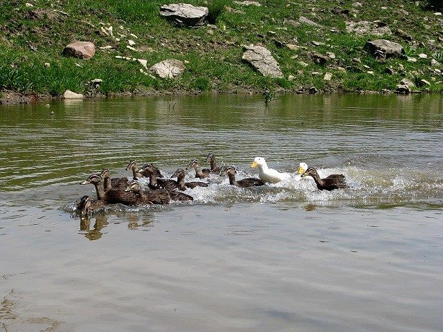 I took the little Pekins to the pond for the first time today. ....much fun was had!!! ....please excuse the Rouens....