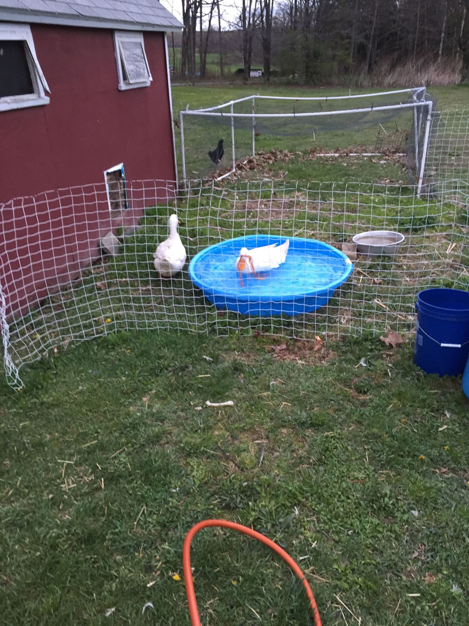 I finally got a pool for the ducks. So far, Jojo is the only one that I have seen use it. This was taken as soon as I finished filling it. I thought he would stay in, but came running after me the second I walked away.