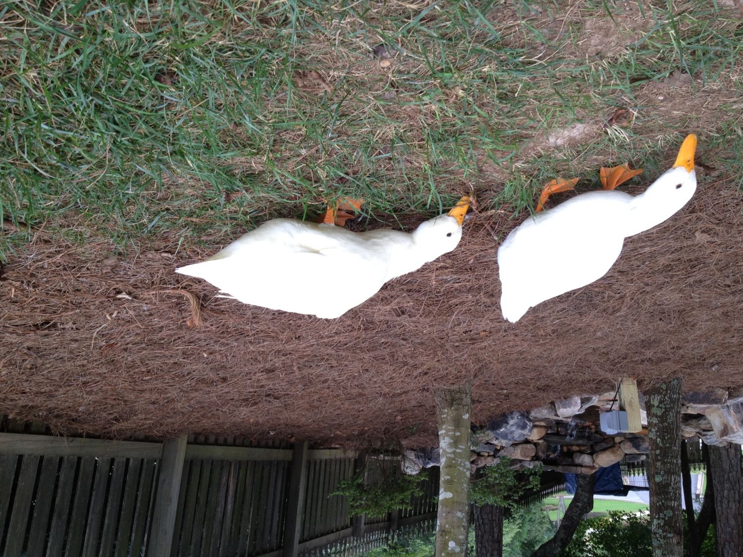 Aren't they funny creatures? We have not gotten to the mating stage yet, but are seeing signs of it. Our nly survivor of 12 from the hatchery (McMurray) arrived with 11 dead, he is named Lucky, and he of course imprinted with us while we awaited replacements. We did not know at the time he was a he, but now he has 12 females to deal with. They are just over 3 months old, but are exhibiting the mating behavior, head bobbing etc., but poor Lucky seems not to know what to do with himself. He walks around with his head tucked down, almost a timid stance, but stands up for himself. Almost like he wants to be invisible to the girls. He's a male for sure, the very low quack, and a curled tail. A sweetheart, he just goes with the flow. Will be interesting to see how he makes out LOL with all the women, but he does seem to be taking to one girl in particular, and she is receptive. Wonder how this will all work out. Anyone have this experience and how it ended? Thinking of having a wedding, put a little bow tie on him...