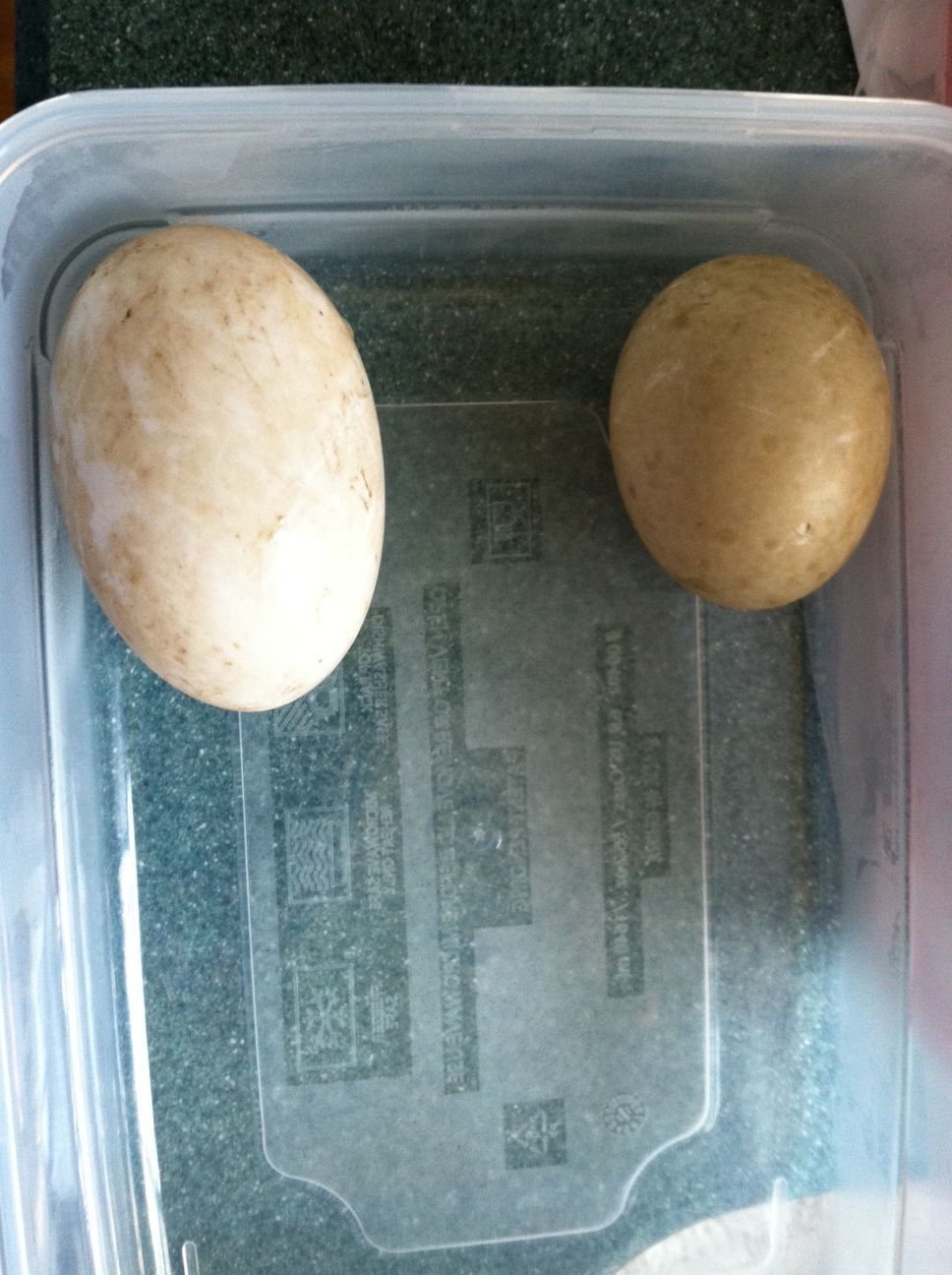Hi Everyone! So we have 3 female Pekin ducks, and we just started getting eggs! I'm assuming only one of the girls is currently laying since we've gotten 1 egg a day for 3 days now. The first egg was teeny tiny, and then the second egg was HUGE! (See picture). Then the third egg was kind of an in-between size. I was expecting the first eggs to be smaller than normal since they just started, but any idea why there's such a discrepancy between the first and second egg? Just curious, thanks! (Oh, and the picture makes the small egg look much darker than it is in real life)