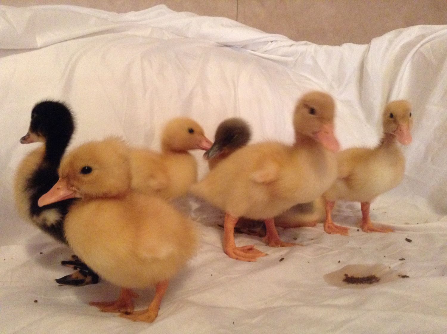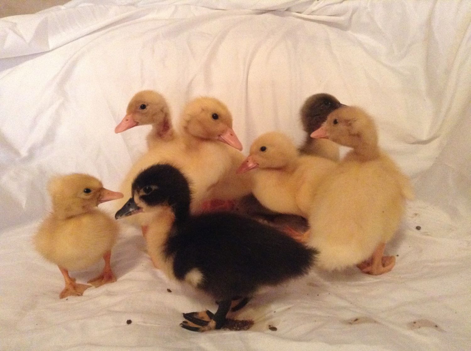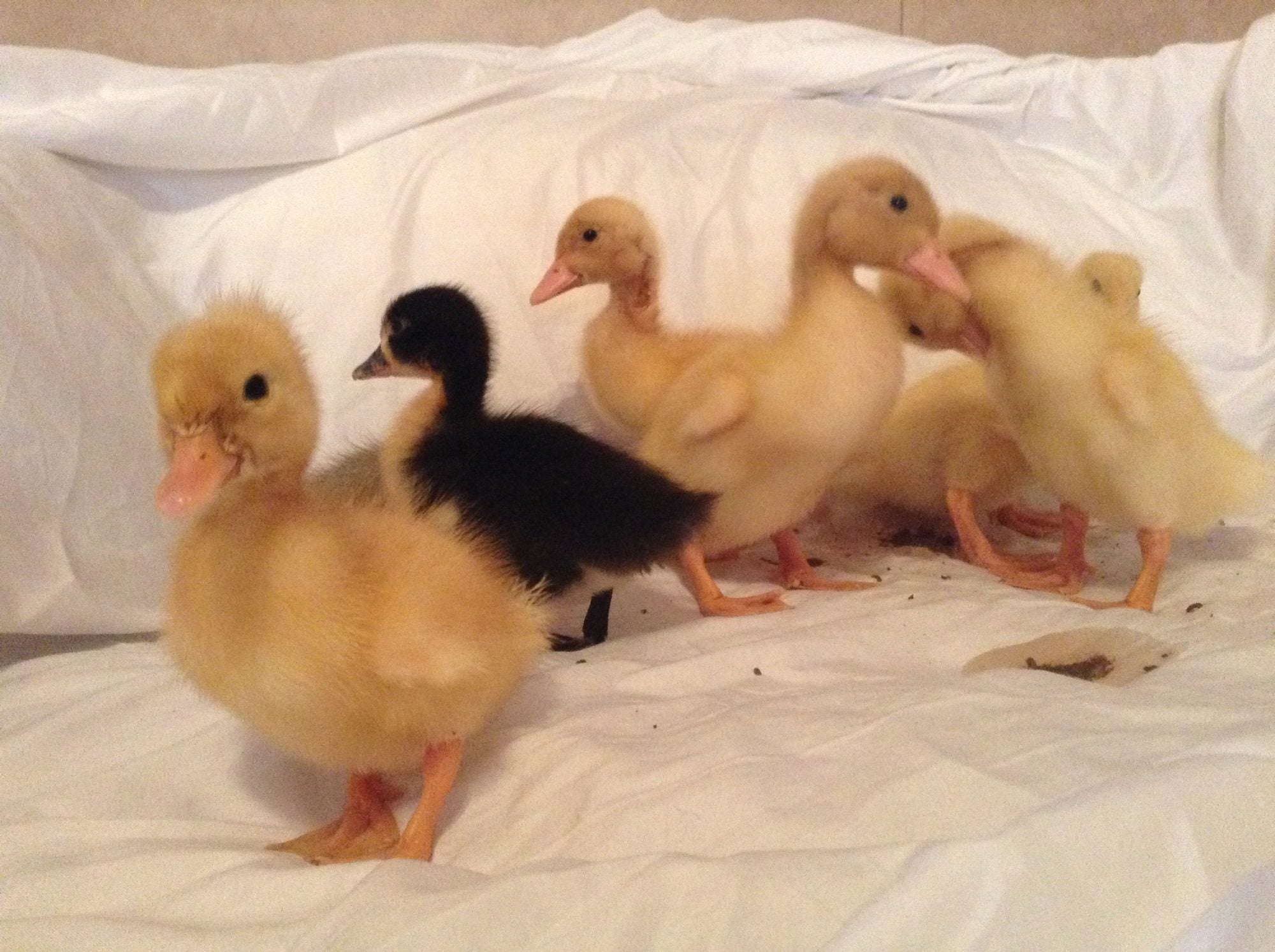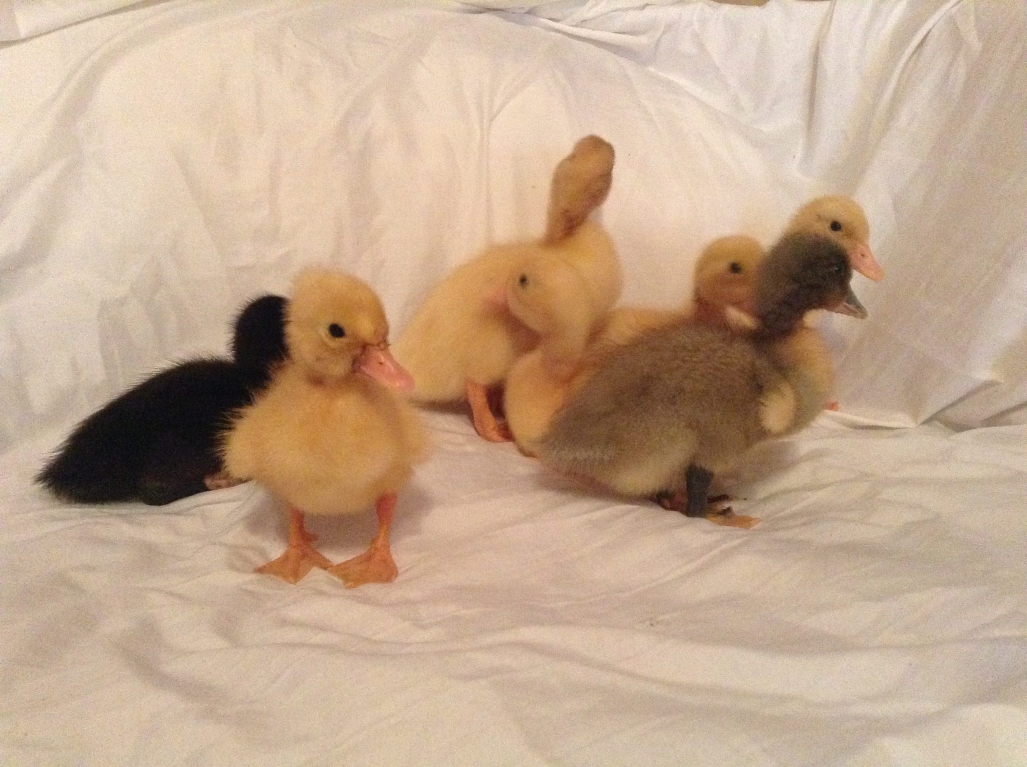 My little three duckies I put in a kiddie pool in our livingroom where we spend most of our time, BUT everytime I get near them to change their water or add food to their bowl they run to the other side of the pool and try to jump out like I am this huge monster. I am only 5'2" tee hee, so I bend down and approach slowly; sometimes i crawl over.