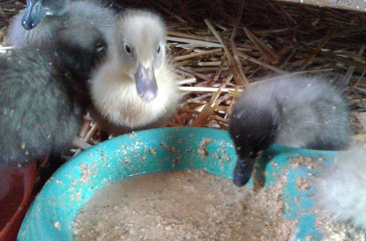 the dark/blue duckling on the right