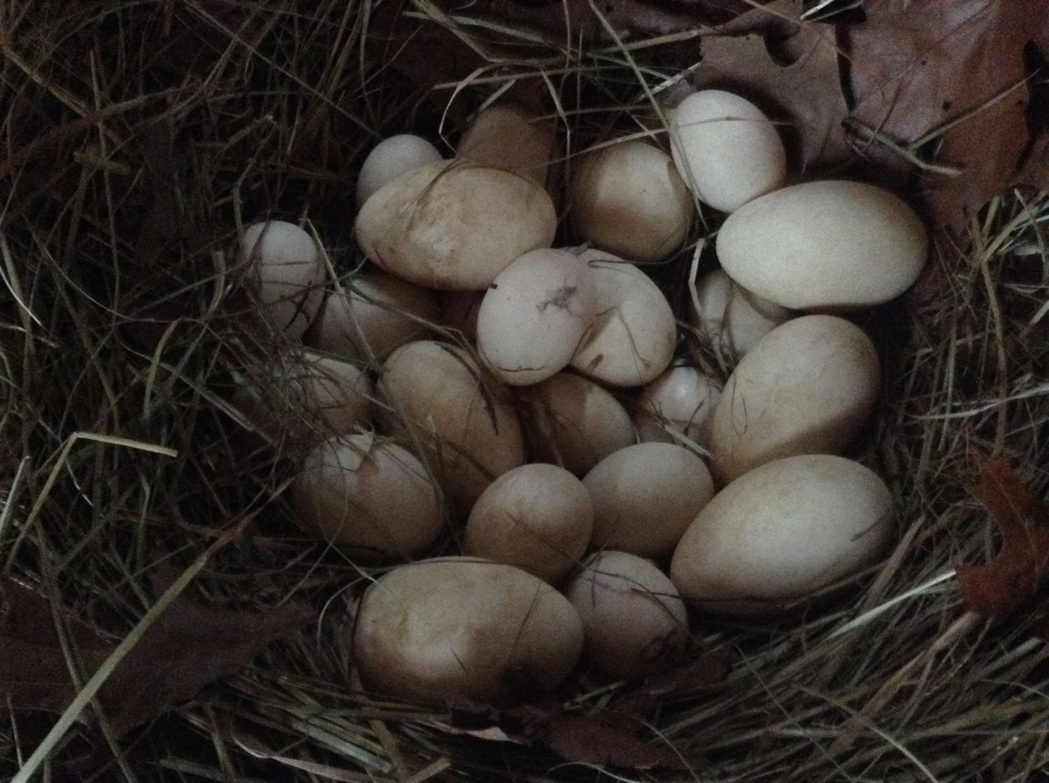 One egg had a darkening spot (on the inside) that covered about 1/3 of the egg???? I dont know what I was seeing??? bruising maybe?? I have not seen this with my chicken or duck eggs... maybe from being shipped?? and the box had a big dent in the corner of the box, you saw it Sarkchick (pic). And one was cracked from top to bottom about 3/4 of the egg. I put it in. I was going to ck on how to seal it.