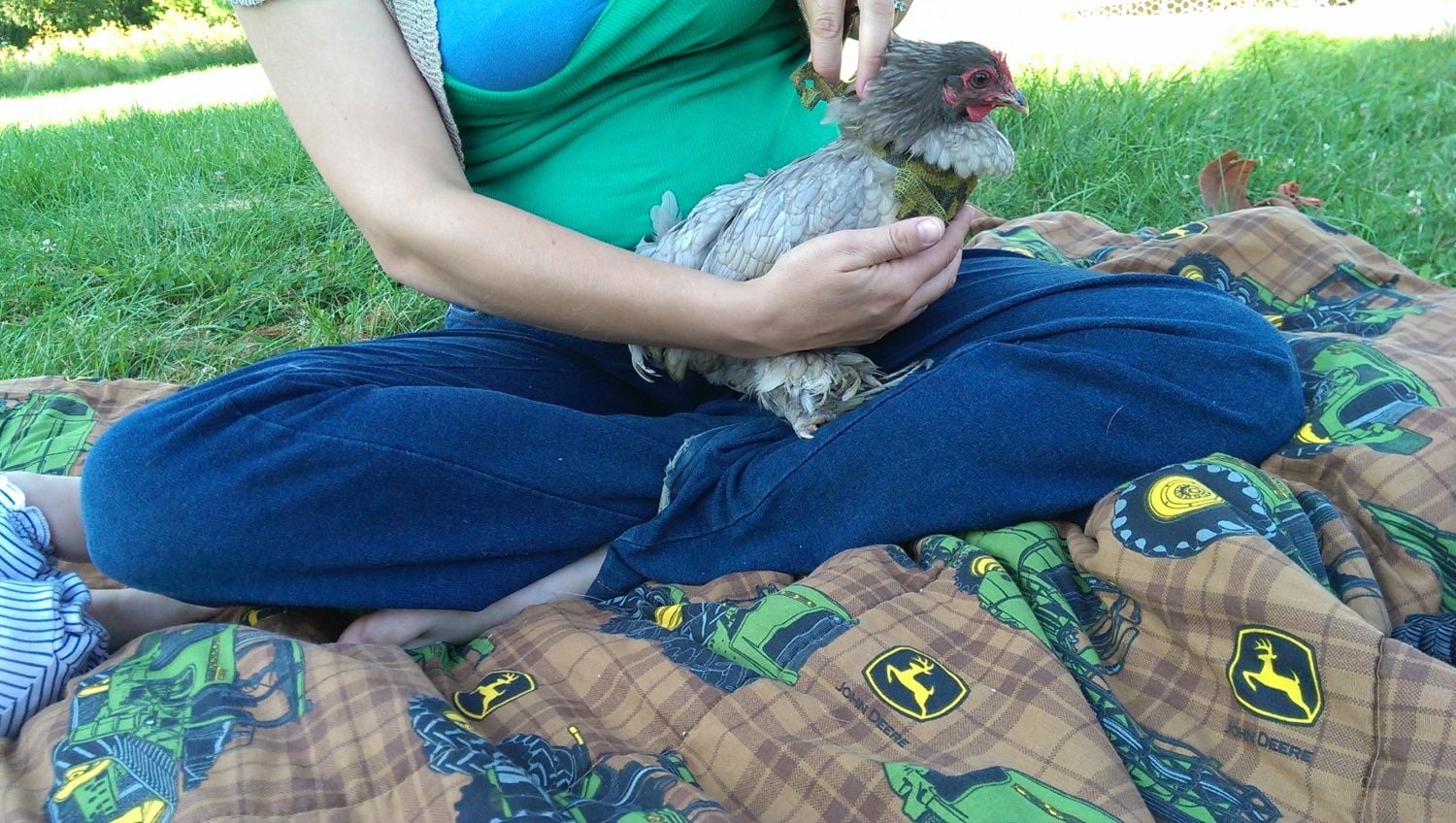 She used to flop over and refuse to get up when I first put this on her. She has since accepted her fate (with some grumbling, of course)