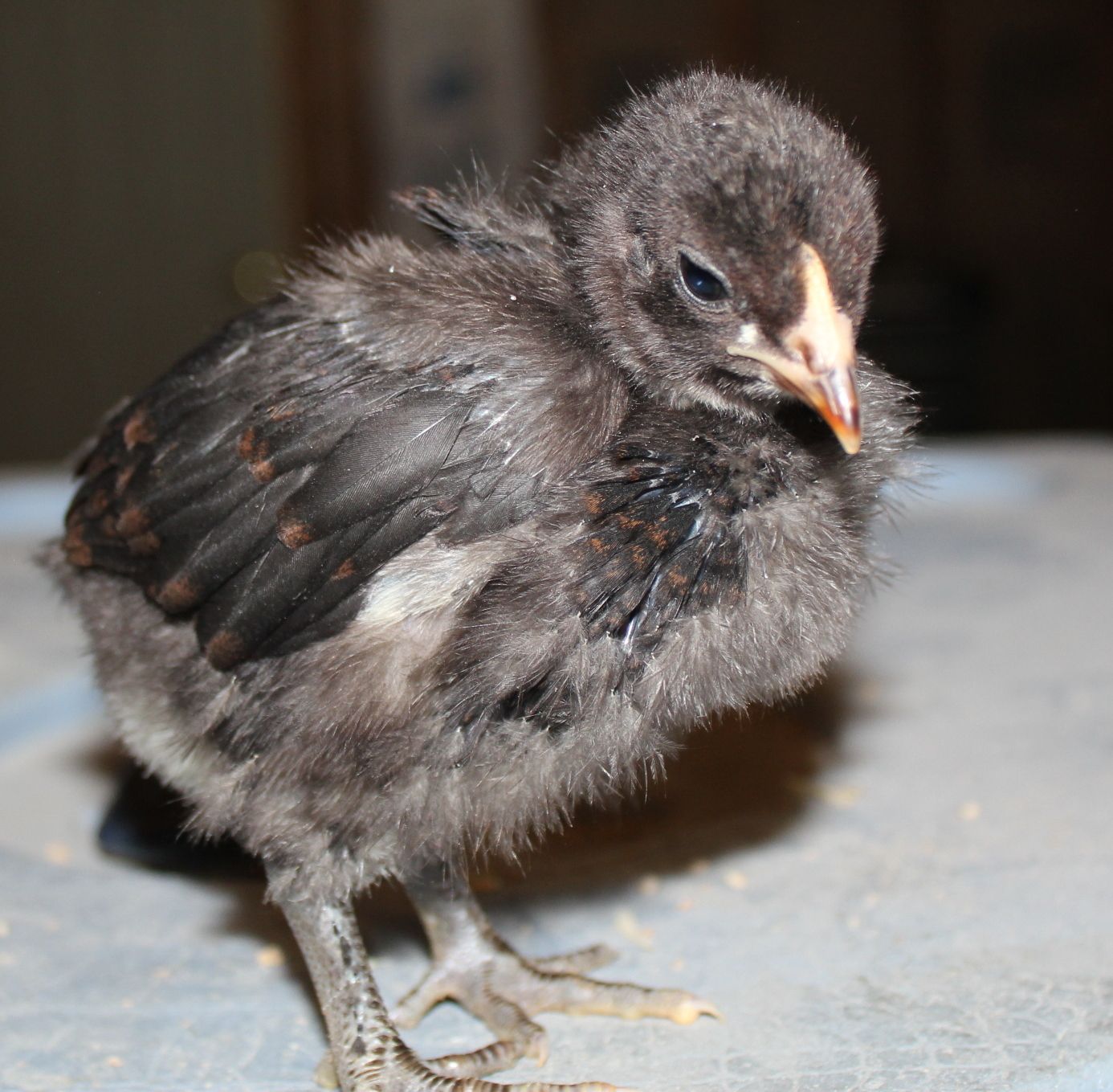 Ok, who can help me out with chick ID?? I hatched these guys almost 3 weeks ago. It was a mix of ameraucana, marans and olive eggers. I know that 2 marans eggs hatched and I think I had IDed one.