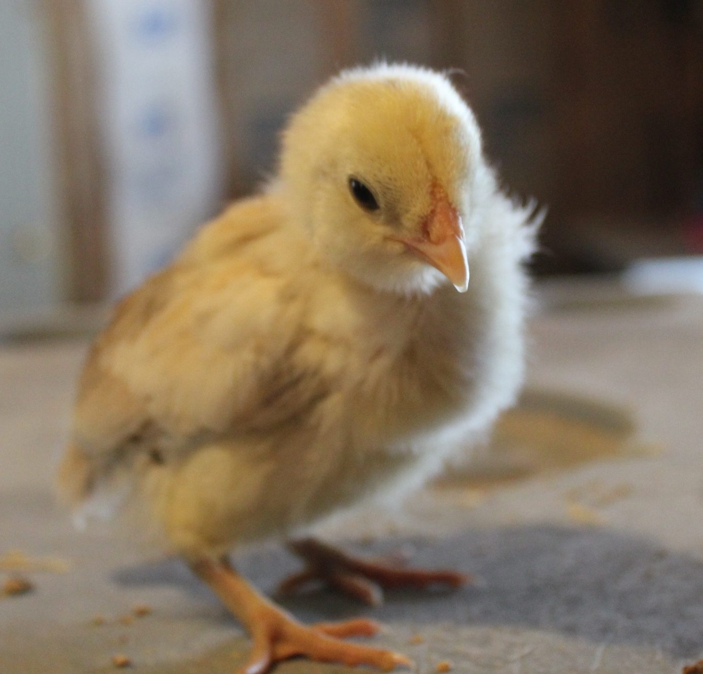 She looks nothing like the other light chicks that hatched and has a SMALL amount of leg feathering...
