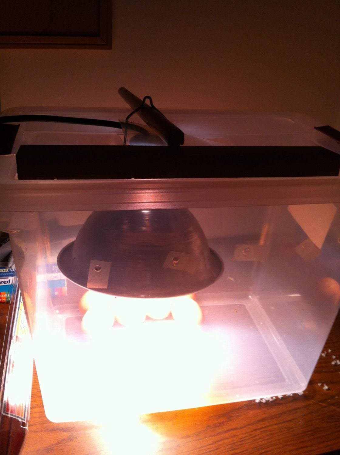 2nd if you end up having temp spikes or ALOT of variation with that hot water heater thermostat because it READS radiant heat NOT ambiant... I wrote about three kinds of thermostats in this article, it will explain them if you dont know that is and the first one is cheaper than a hot water heater one. https://www.backyardchickens.com/a/incubator-incubator mind you this was written for an incubator.....