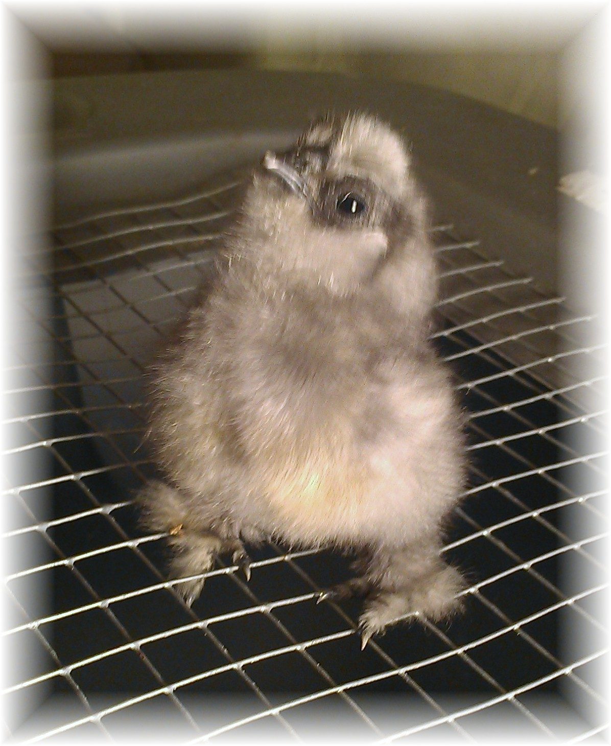 WE gots a pip already! 16 in lockdown since yesterday, serama frizzle sizzle silkies The newest silkie, Tink and Romeos Baby, Romeo is white... very active and wont dry off, he is blue and dark blue and some gold colors, not sure why the camera wont pic up on the blue. Crazy neat looking silkie. The patches on his butt that have fluffed up are awesome! face is amazing! Yeah thats right, I got a beard but Mom says I better be a girl! Is this the fatest silkie ever or what!! LOL