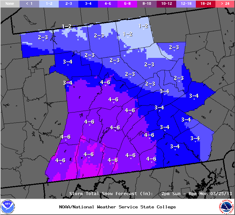 Snow totals for Sunday night into Monday