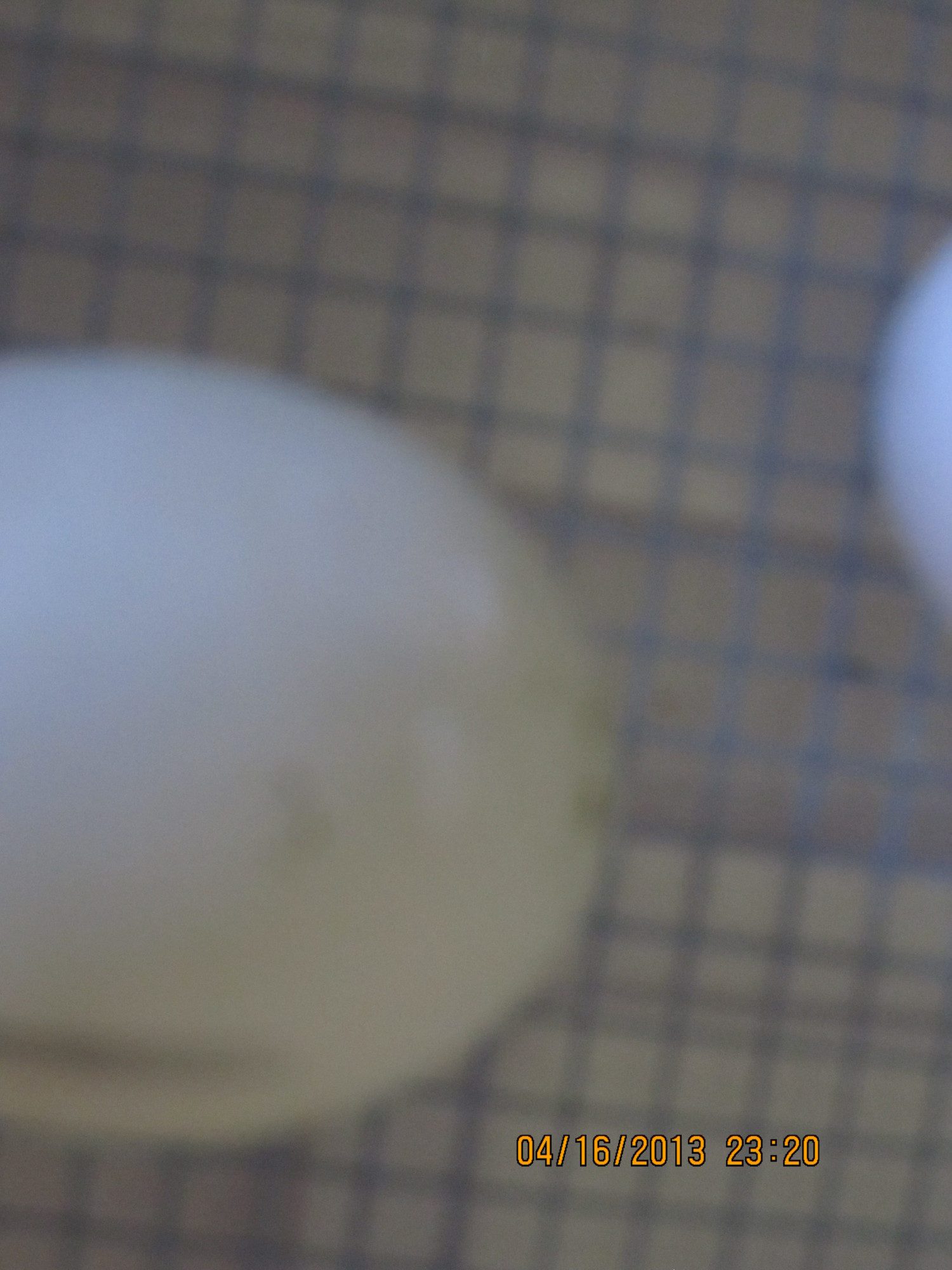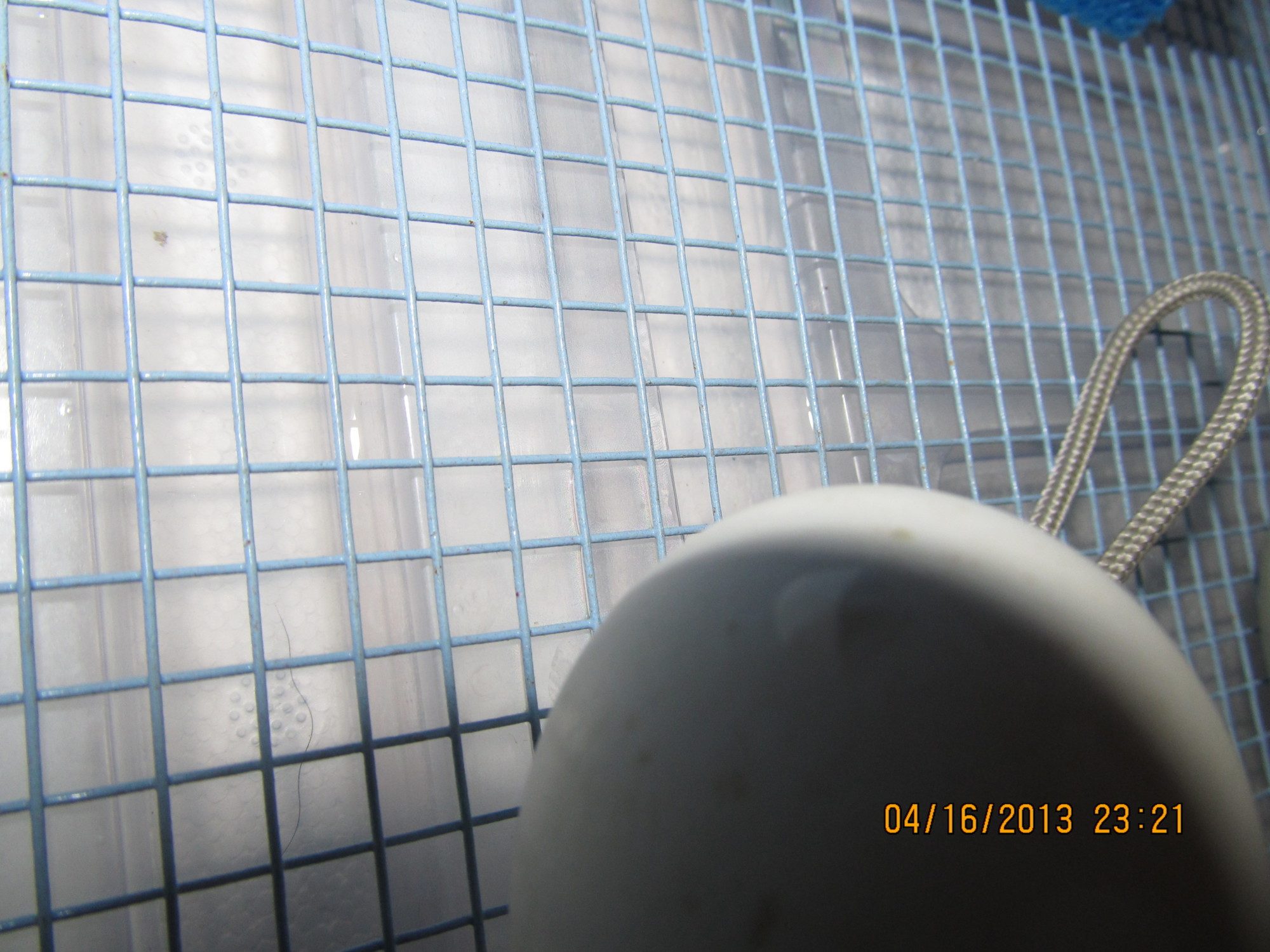 Here it is!! Middle of the egg *sigh* Never had one do this! He/she is yellow though!