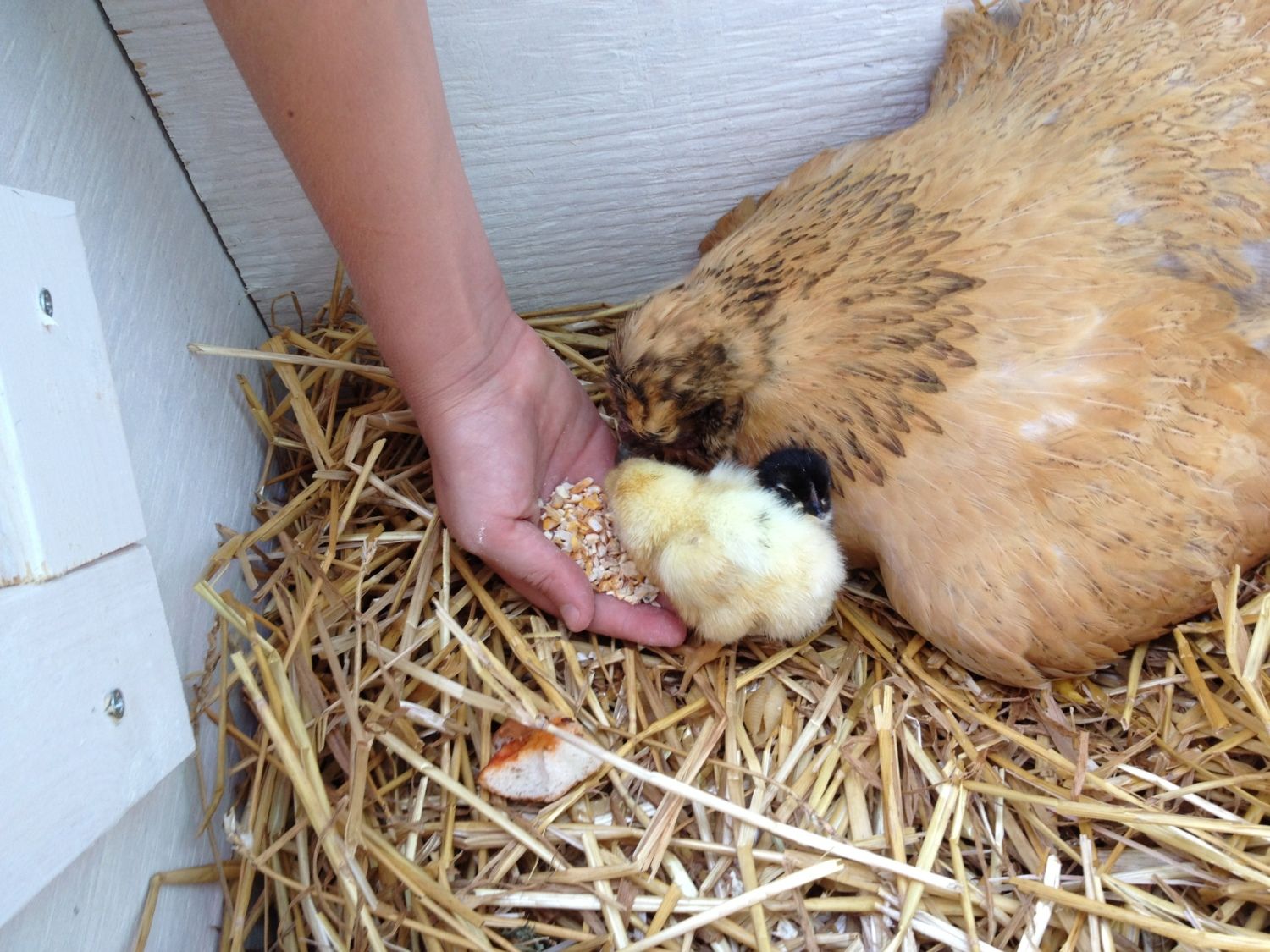 3) the darling 8 year old can reach bottom to feed chicks treats.