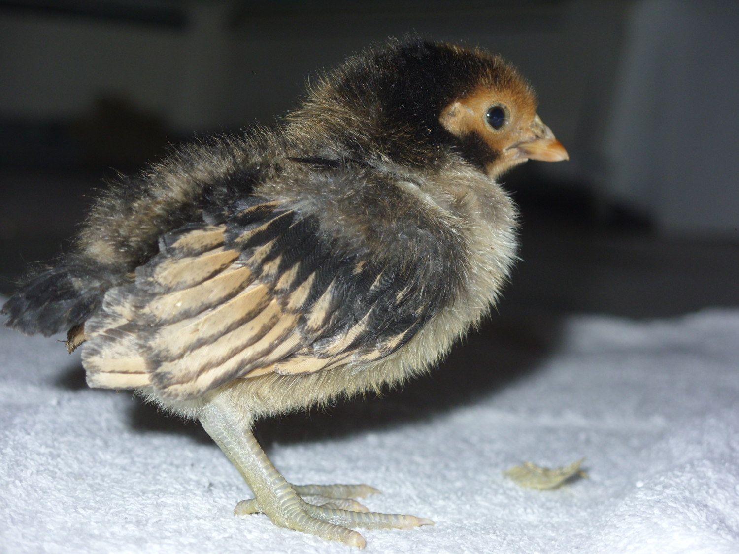 I managed to wear down my mother and got three bantam chicks from the feed store! No names, yet, since they're straight run and I'll have to give up the roos. I can't get over how tiny they are. I can carry all three in one hand! I think you guys were right and these are porcelain d'Uccles. And a Sebright. It was shy, so you can't really see its signature pose.