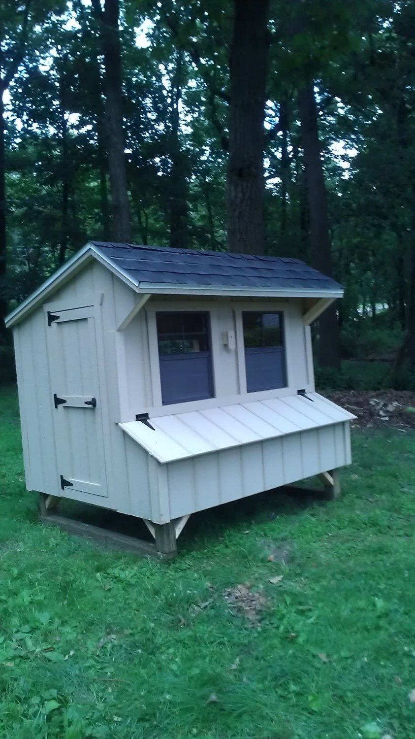 Picked up my new coop today...serious PIA getting off the trailer and in place....a coat of paint and a pen and I'll be good to go...BTW do chickens like long strait runs say 5'x20' or would a square be better?