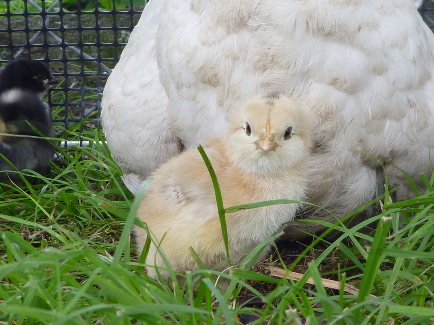 Gracie and Pidgy each hatched out a brood of chicks almost 5 wks ago, and last weekend we got another broody hatch from our hen Janeway, and actually, her chicks are all from our own flock of mixed breeds, so pretty cool to watch them.