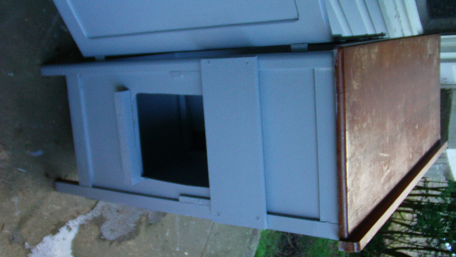 but this is the entrance/ exit out the side and I have a board that can slide up and down to close it off.............just needs a lock.