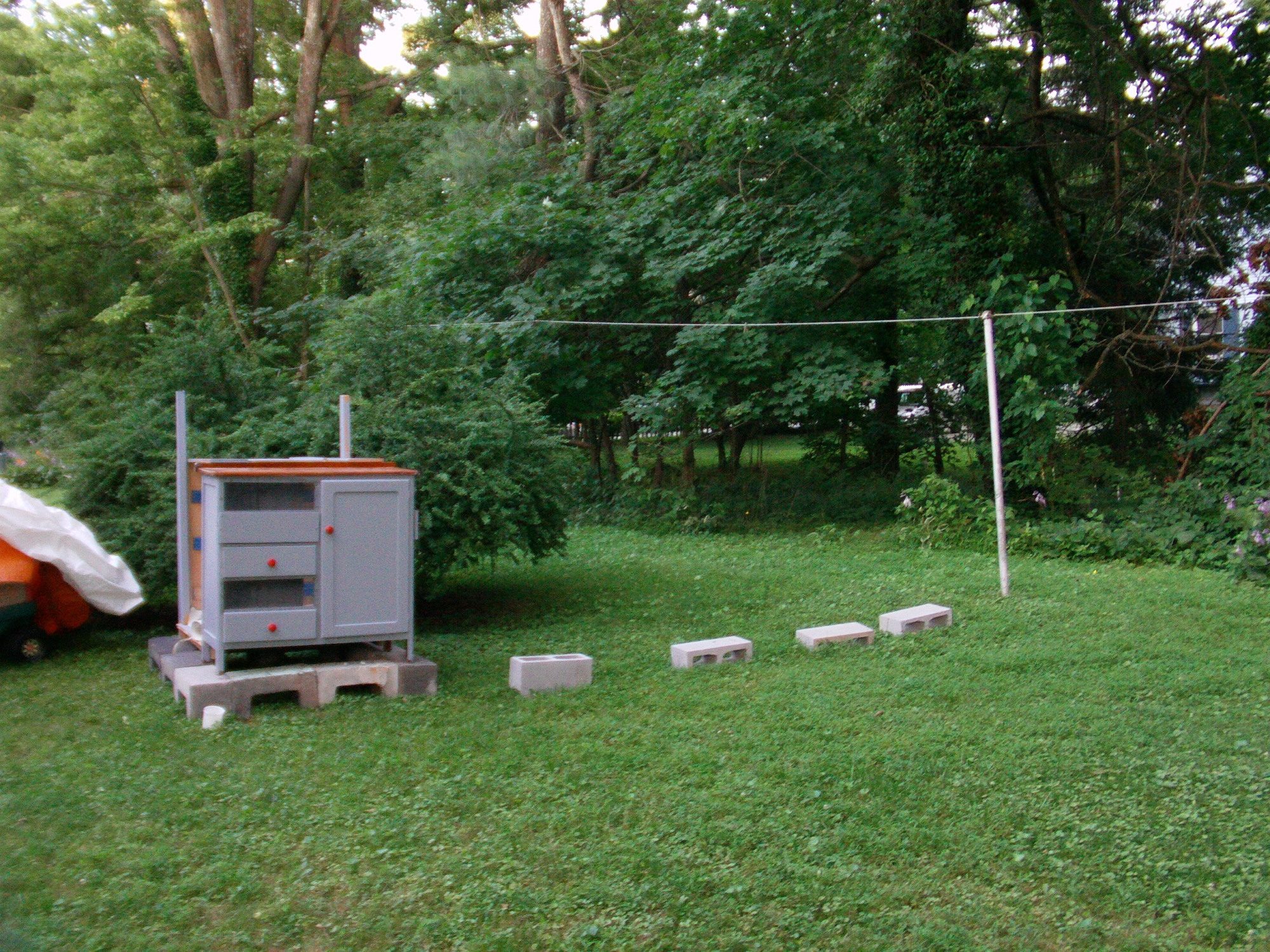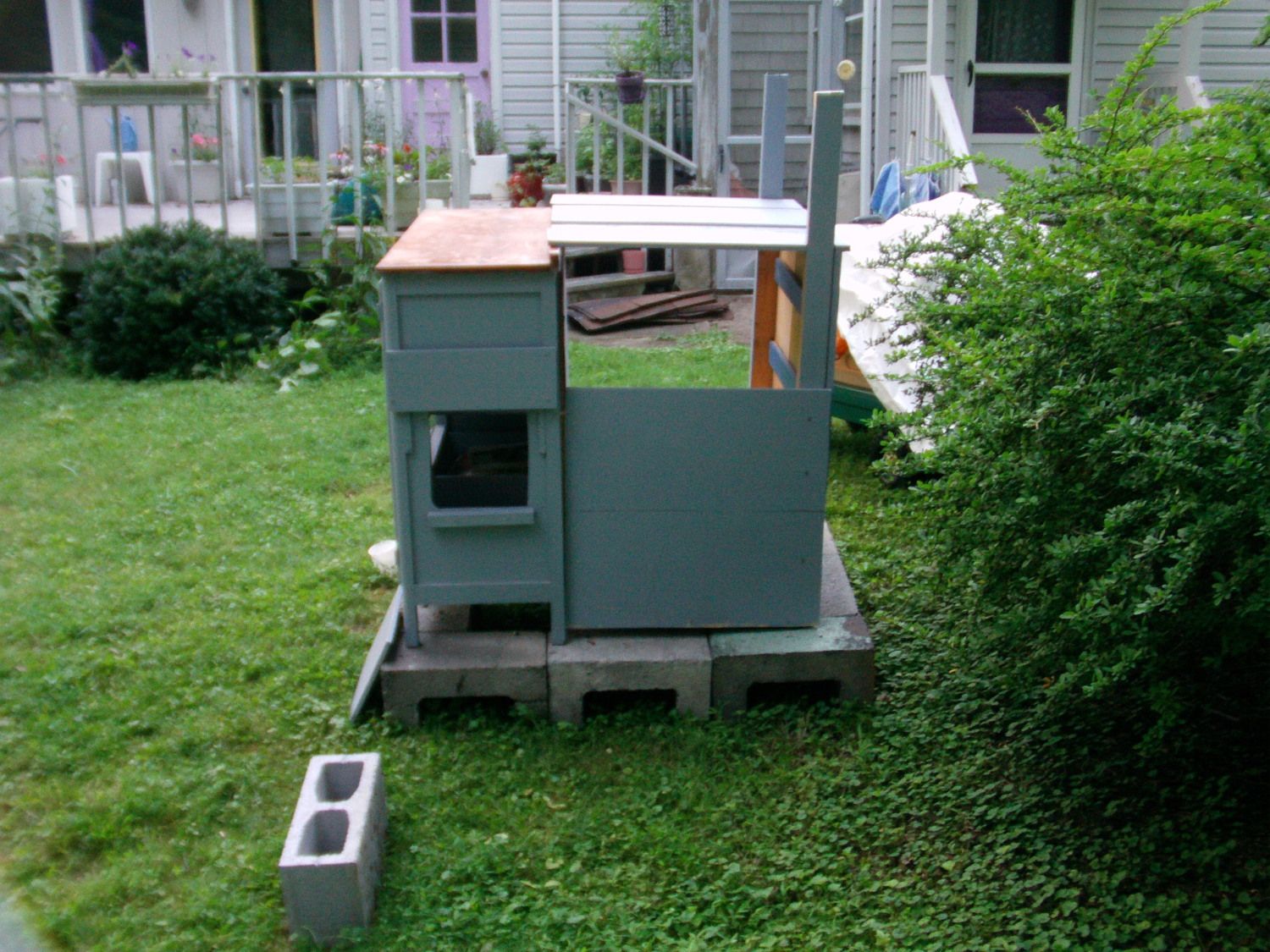 here is the front view and the general part of the yard it will be in. See my car in the back is also right next to a busy road..........so I am placing the coop behing the bush for less visibility from the road.