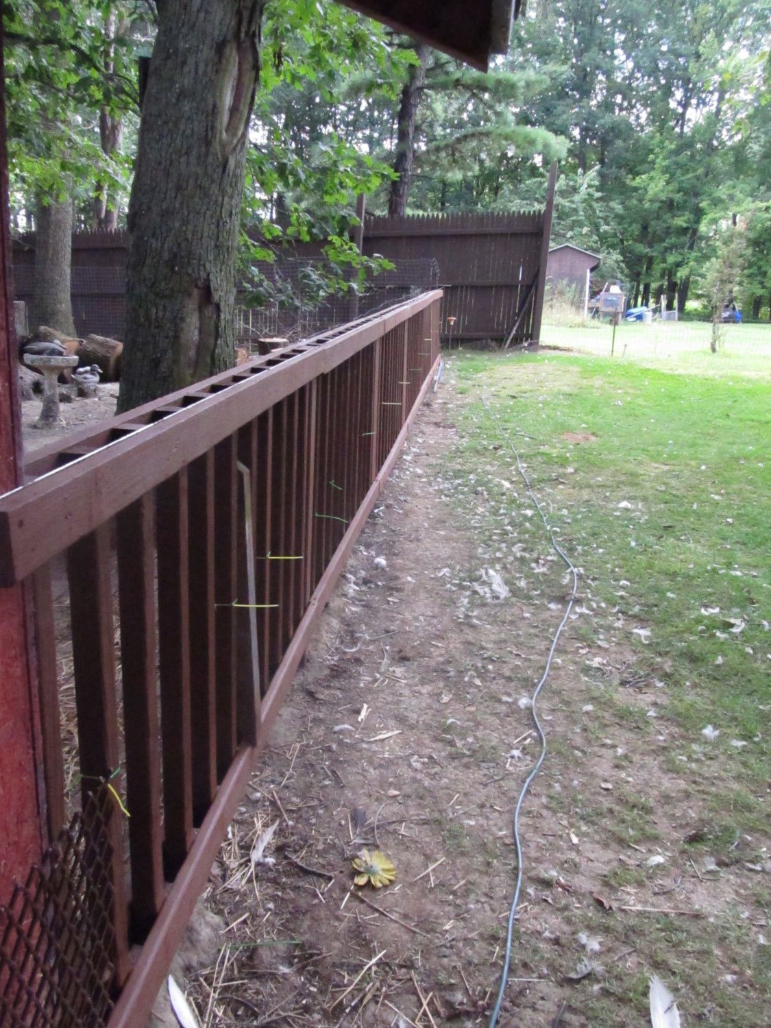 Putting a new fence across the front. Yay looks 100x better! Ans I removed the temp pen (under pen on the right in osb board). And I have a few sections of privacy fence up!
