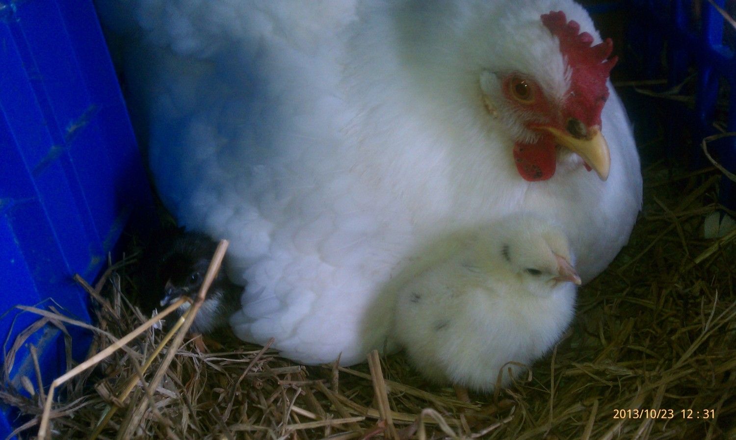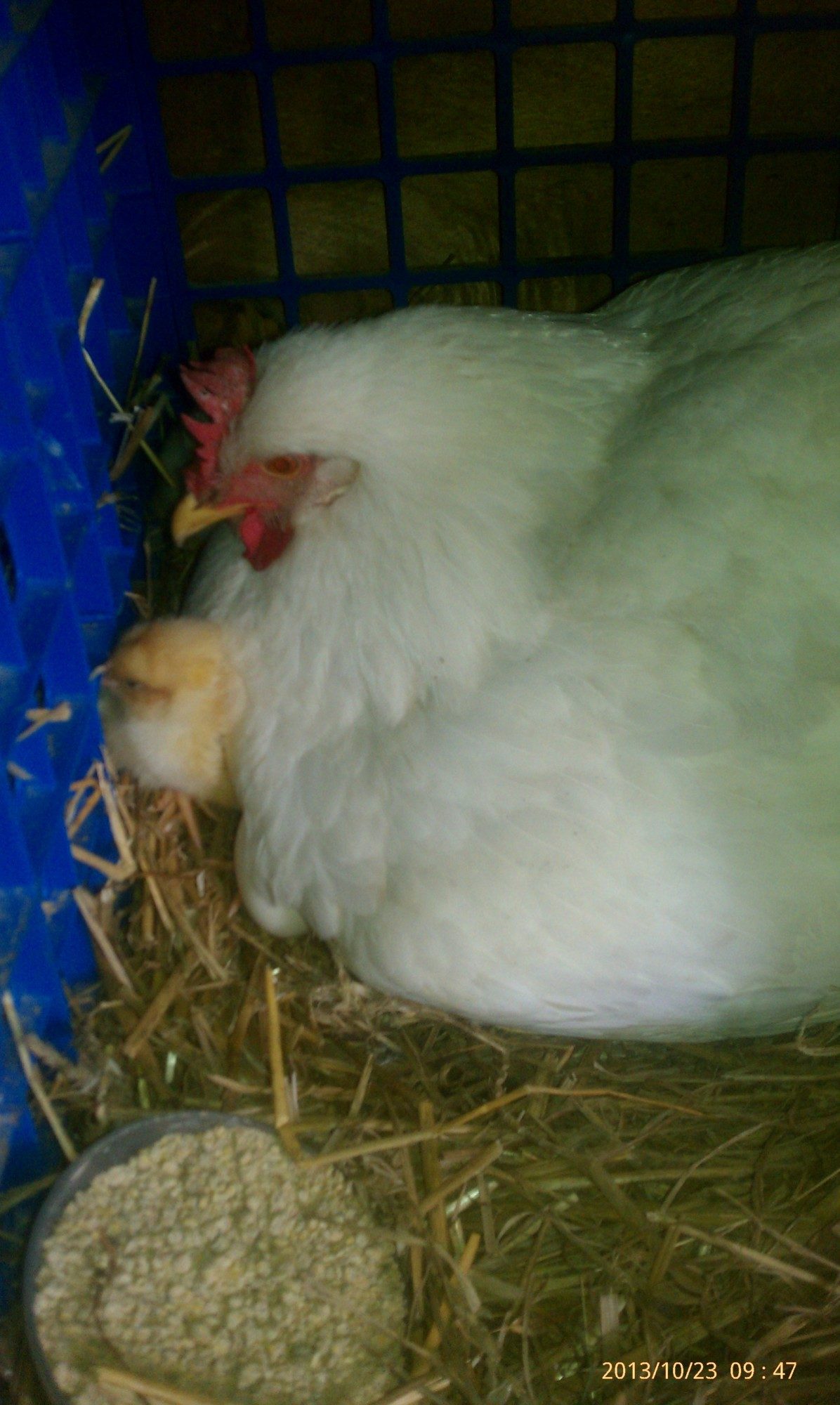 Got a small surprise today, Mama took the babies outside today....what surprised me was that my other BO hoped into the nesting box(mama's box) to lay an egg. I had about 30 seconds of "where did the babies go"...go figure.....